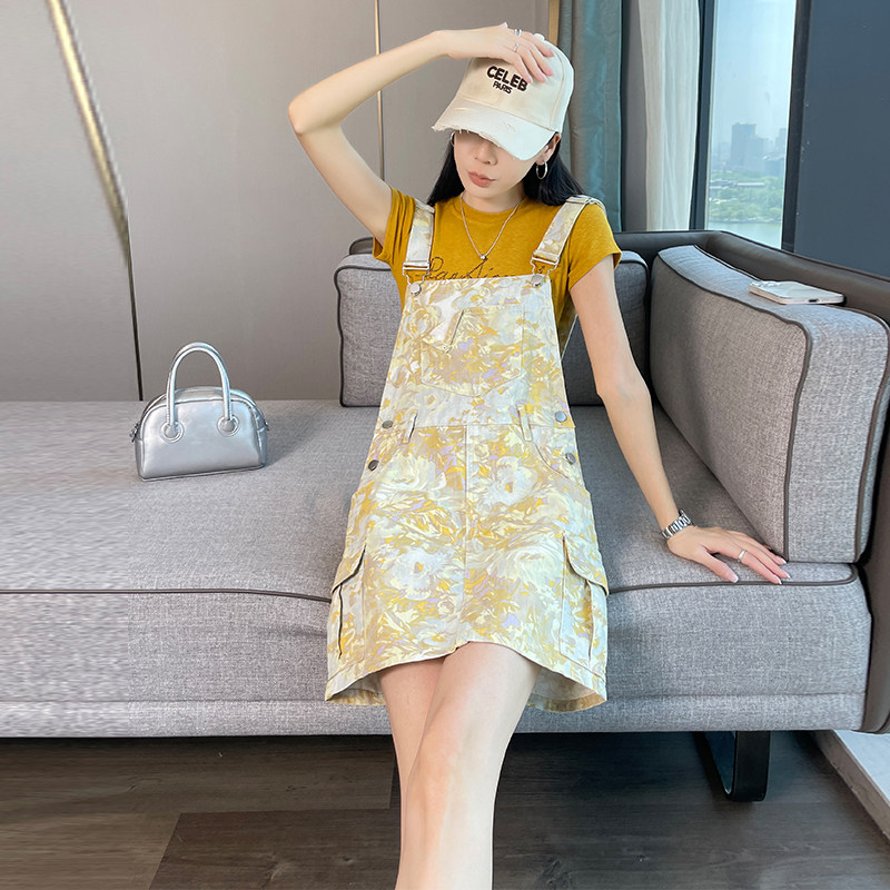减龄牛仔背带裙女夏季薄款2025新款宽松显瘦休闲印花吊带连衣短裙