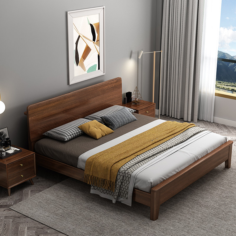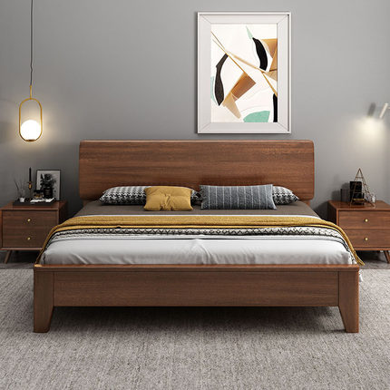 全友家居北欧1米5胡桃木全实木床现代简约1.8米双人床2米x2米2米