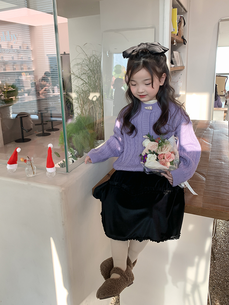 2023冬季儿童绵羊绒软糯舒适毛衣女童宝宝洋气牛角扣针织开衫外套