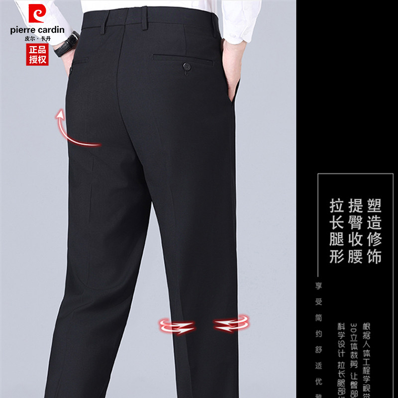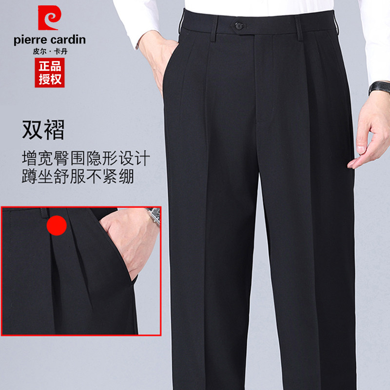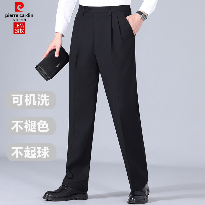 皮尔卡丹秋冬100%羊毛双褶西裤男中年高腰深档可机洗休闲西装裤厚