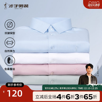 才子男装桑蚕丝长袖衬衫男2025春秋新款商务正装高端休闲打底衬衣