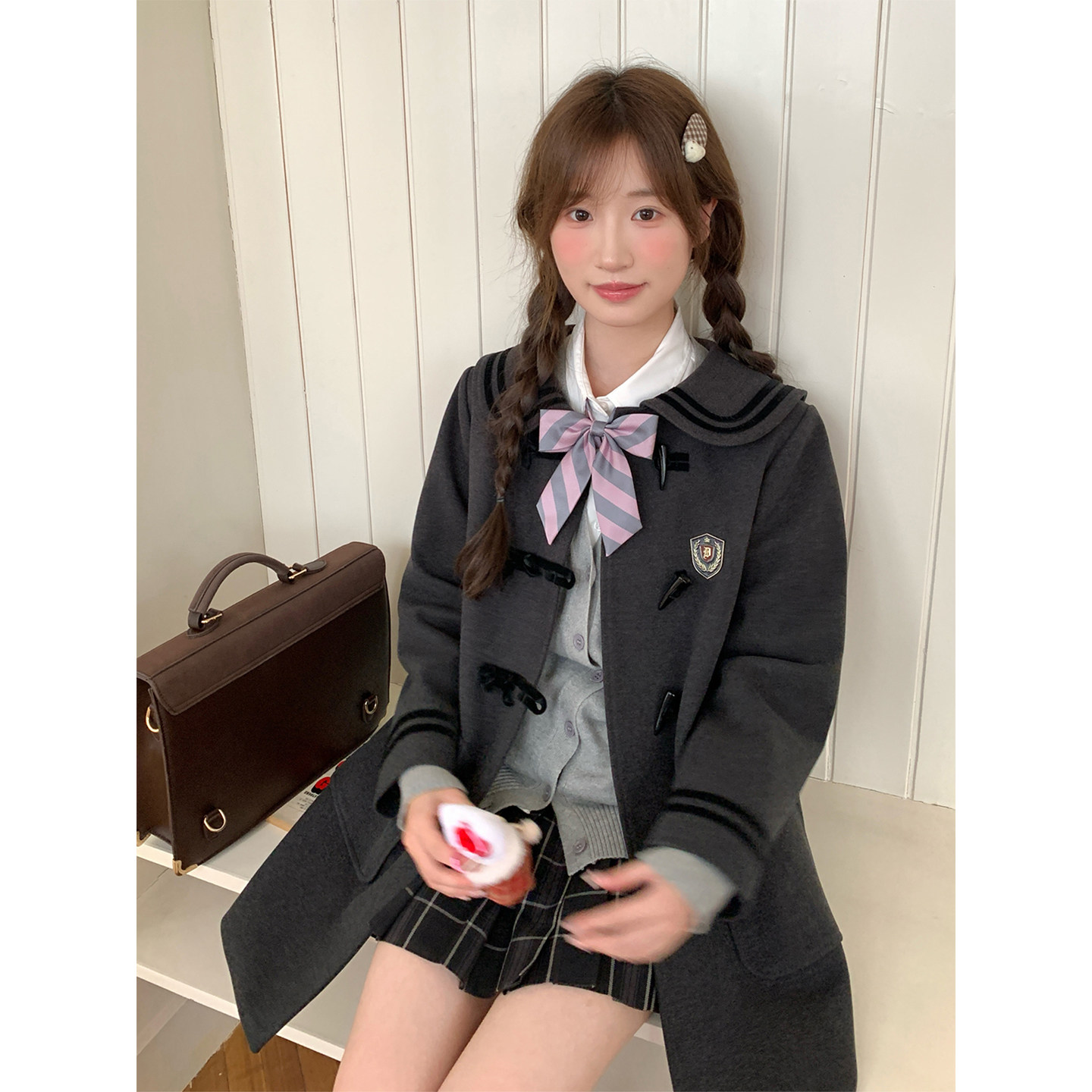 东京岁时记jk学院风深灰毛呢大衣