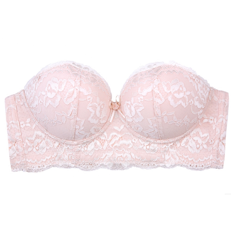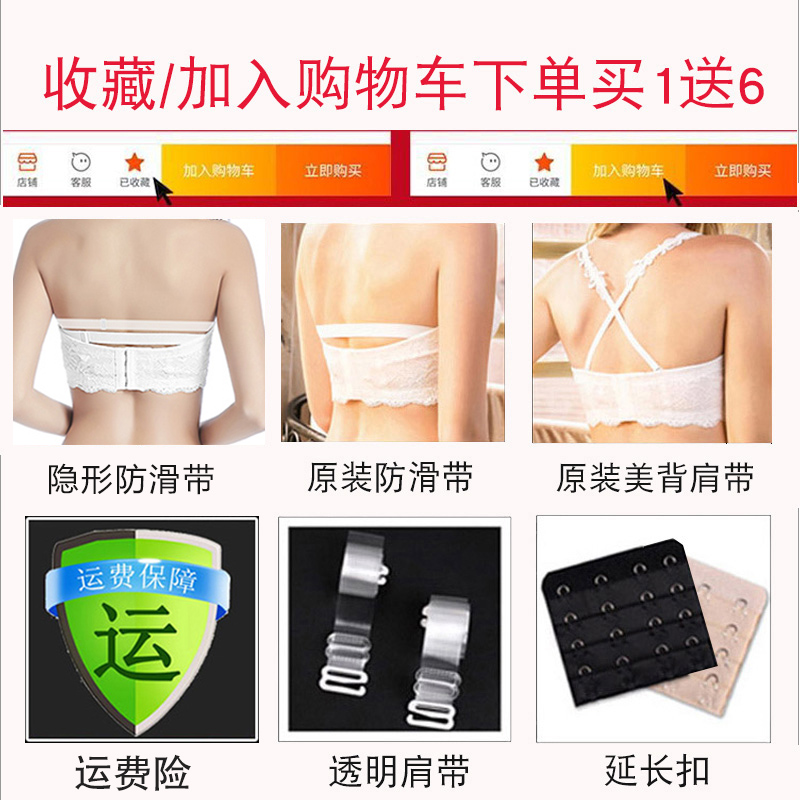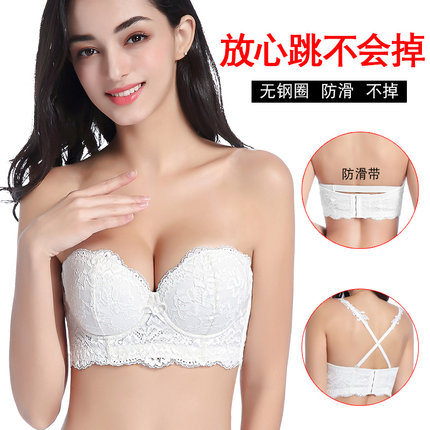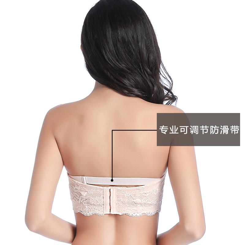 无肩带文胸防滑聚拢隐形文胸贴婚纱礼服薄款美背抹胸式白色内衣女