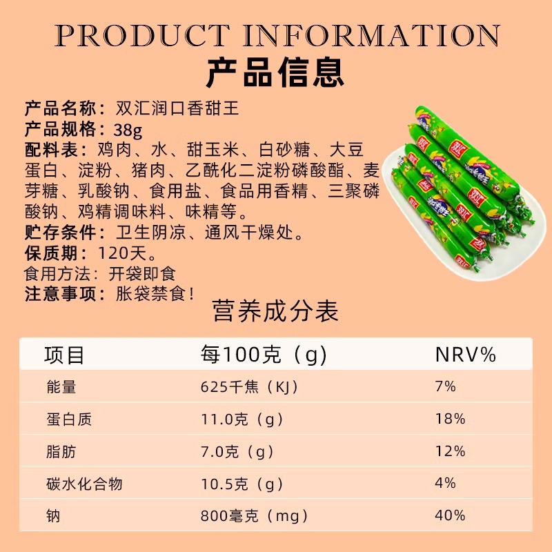 双汇润口香甜王玉米肠火腿肠75g大根玉米味香肠零食开袋即食小吃