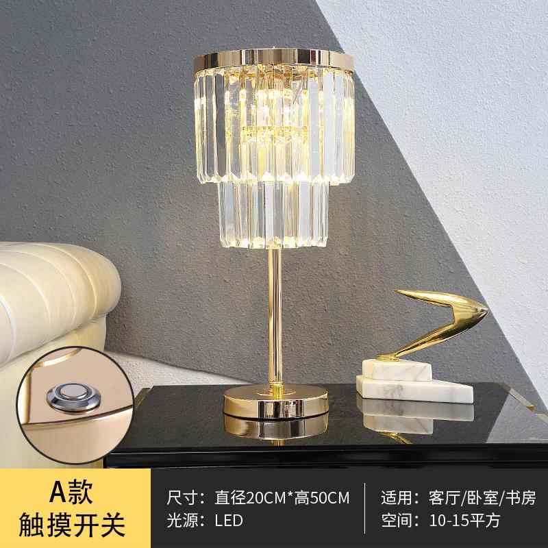 新款后代现奢水晶台灯欧式客触厅温馨简约轻卧室床头灯浪漫婚庆摸