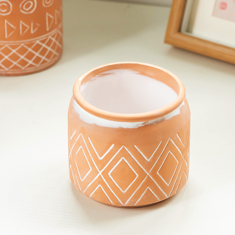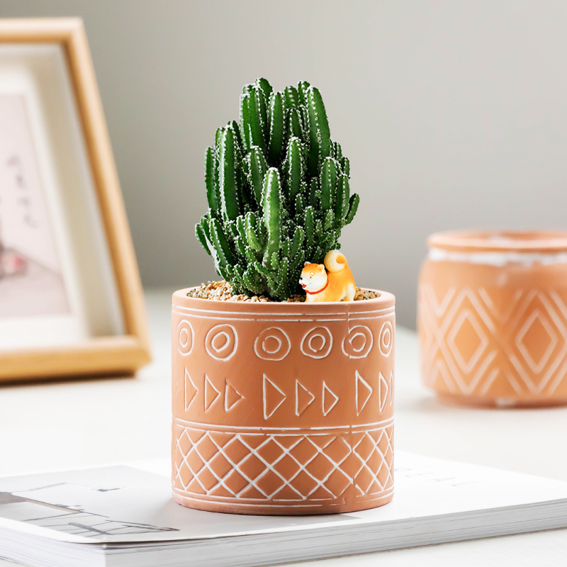 仙人掌透气红陶多肉花盆书桌绿植摆件办公桌仙人球防花卉辐射盆器