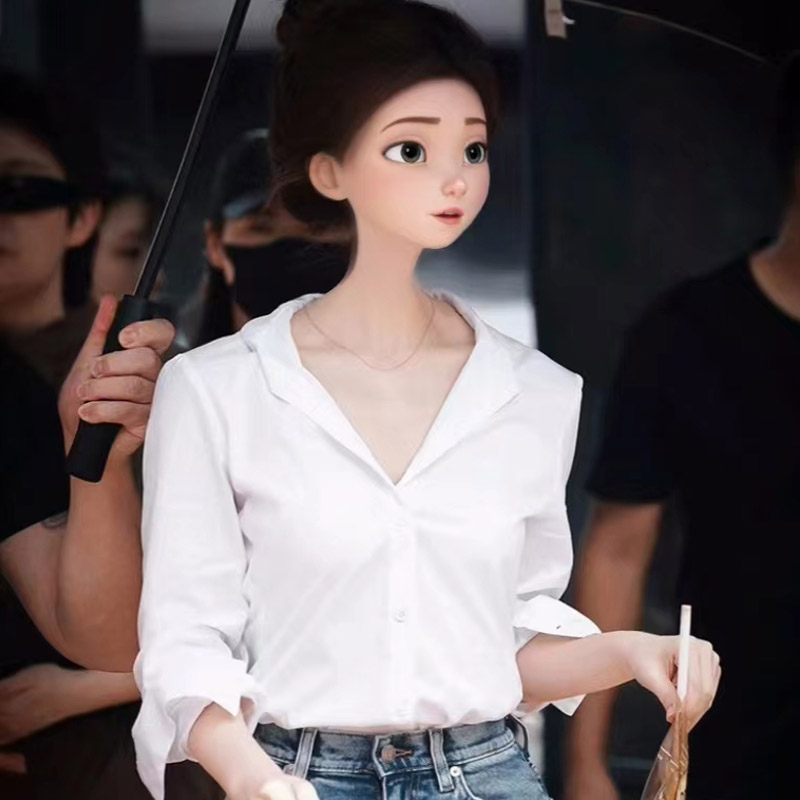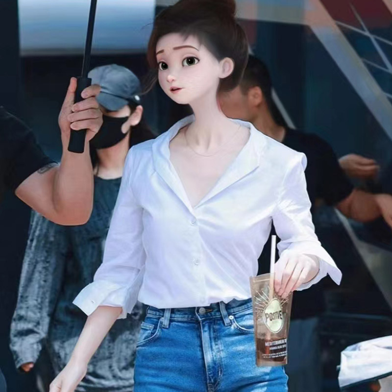 赵露思许妍同款白色气质V领衬衫