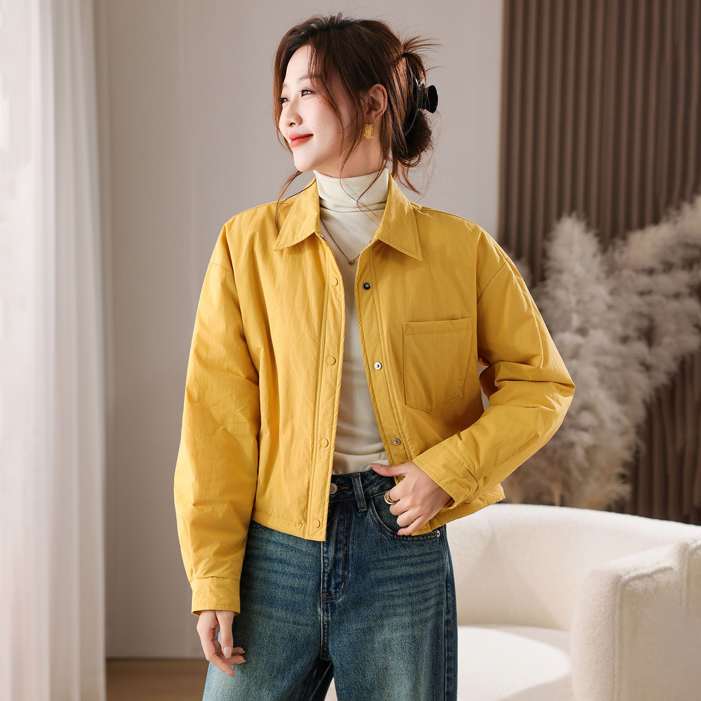 黄色棉服女款冬季2025新款女士短款棉袄超好看夹棉棉衣女薄棉外套