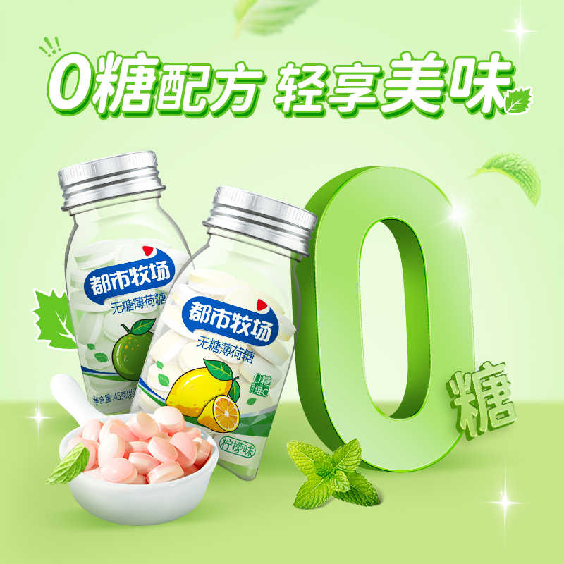都市牧场无糖薄荷糖口气清新柠檬陈皮味多口味混合水果味清凉糖果