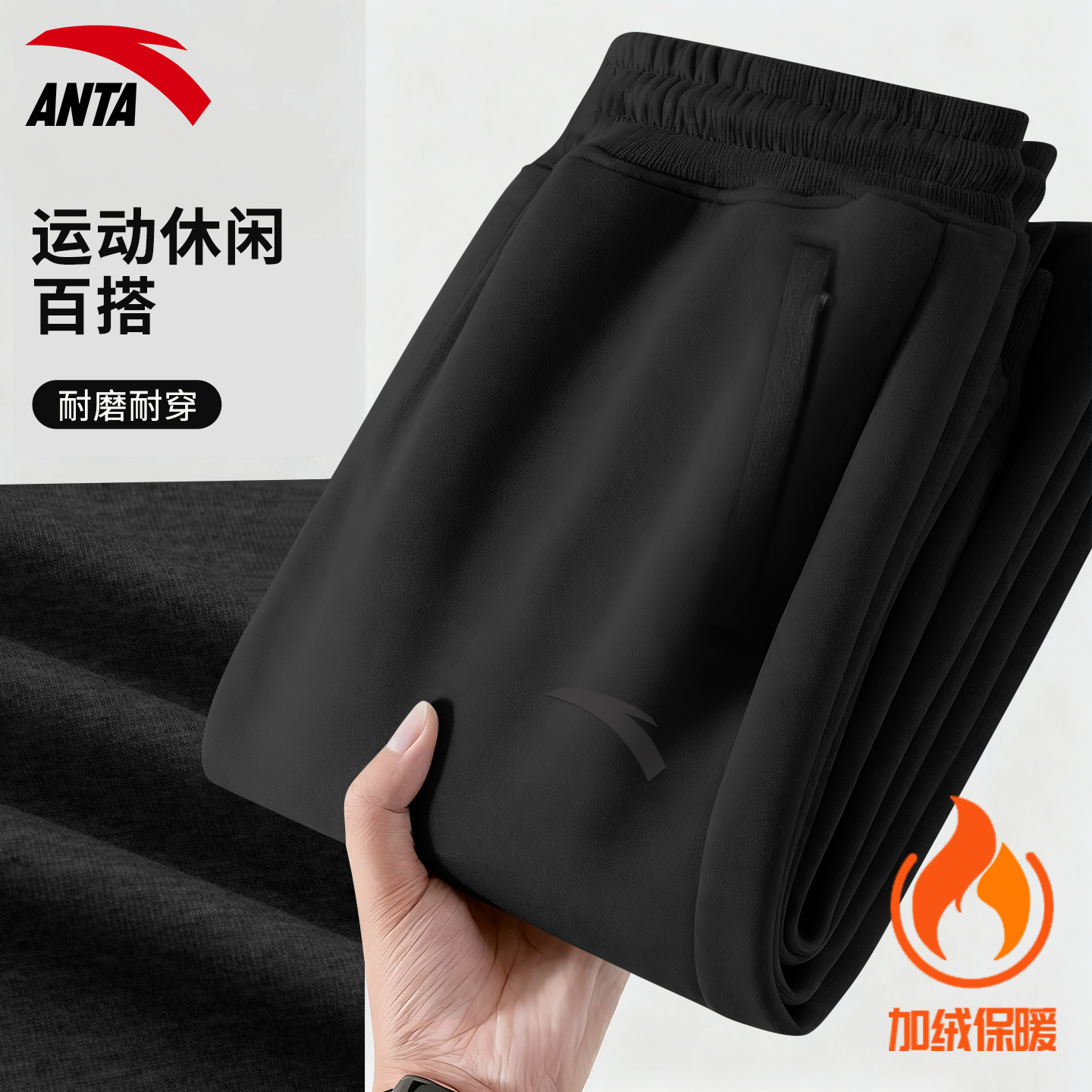 安踏运动裤男加绒保暖宽松休闲裤