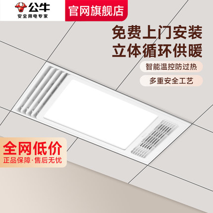 公牛浴霸卫生间集成吊顶取暖器五合一照明换气扇一体暖风机