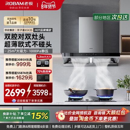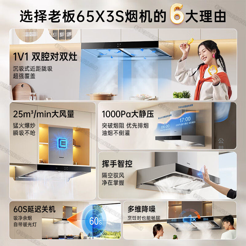 老板60X6S/65X3S双子星欧式吸油烟机顶侧家用大吸力烟灶套装 34
