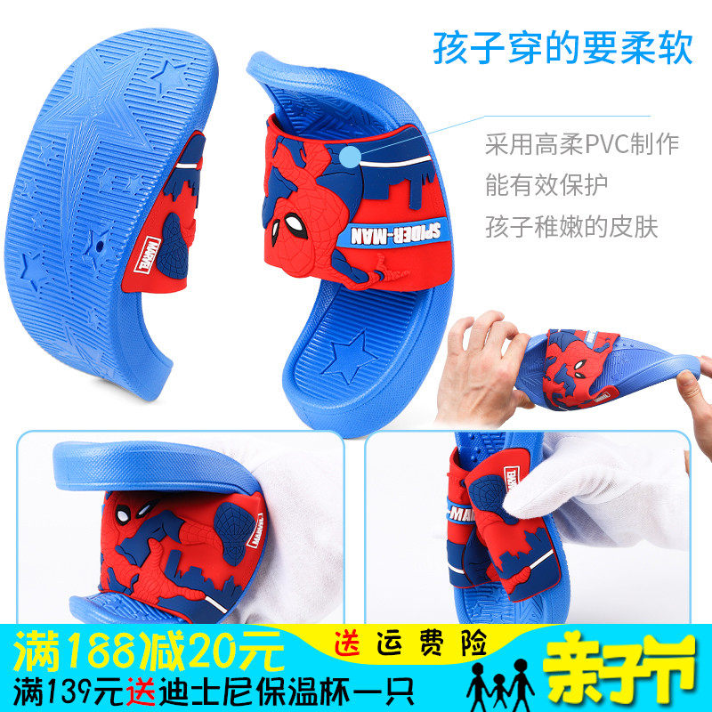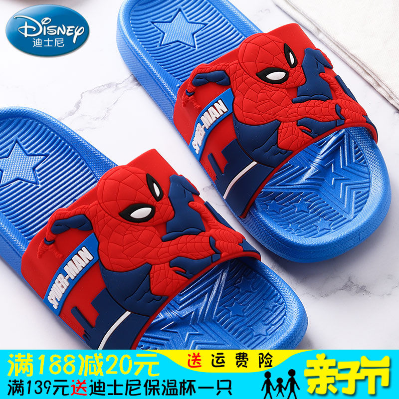 迪士尼儿童凉拖鞋夏季男童卡通蜘蛛侠浴室防滑臭宝宝公主拖鞋女孩