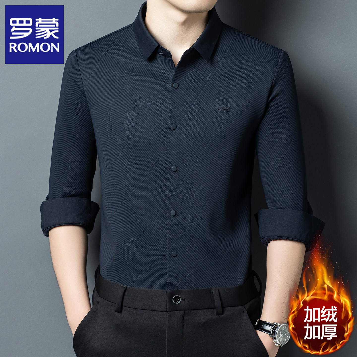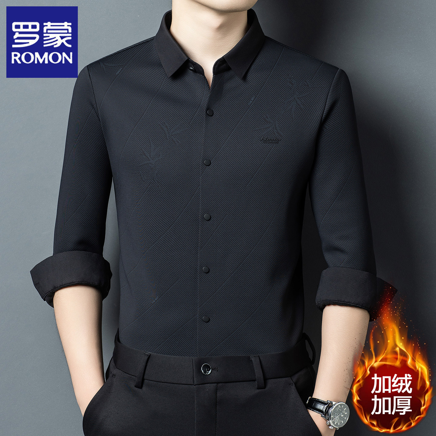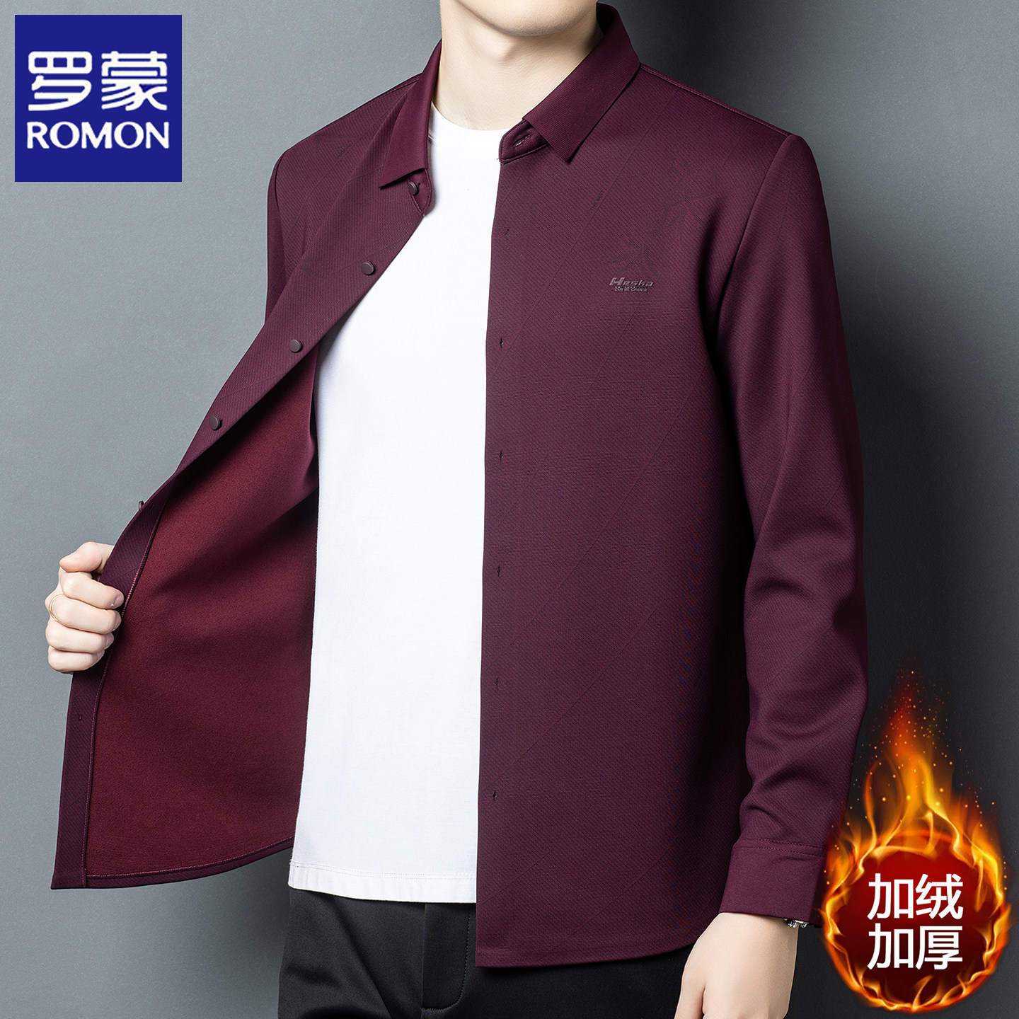 罗蒙2025冬季新款加绒衬衫男衬衣