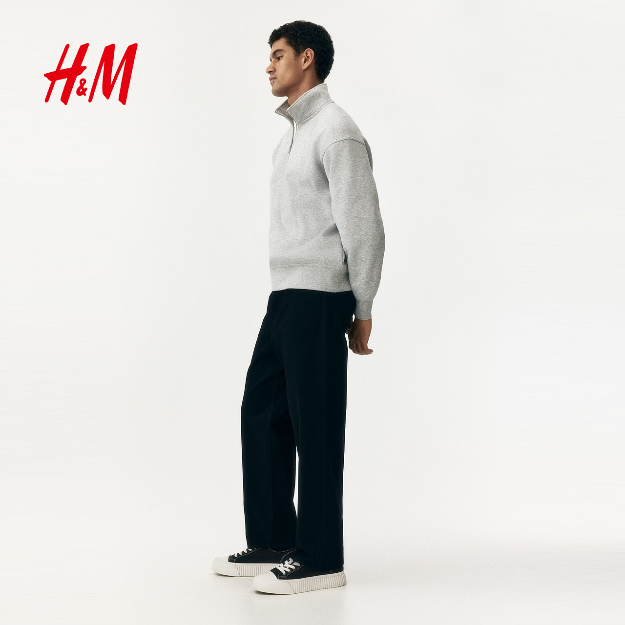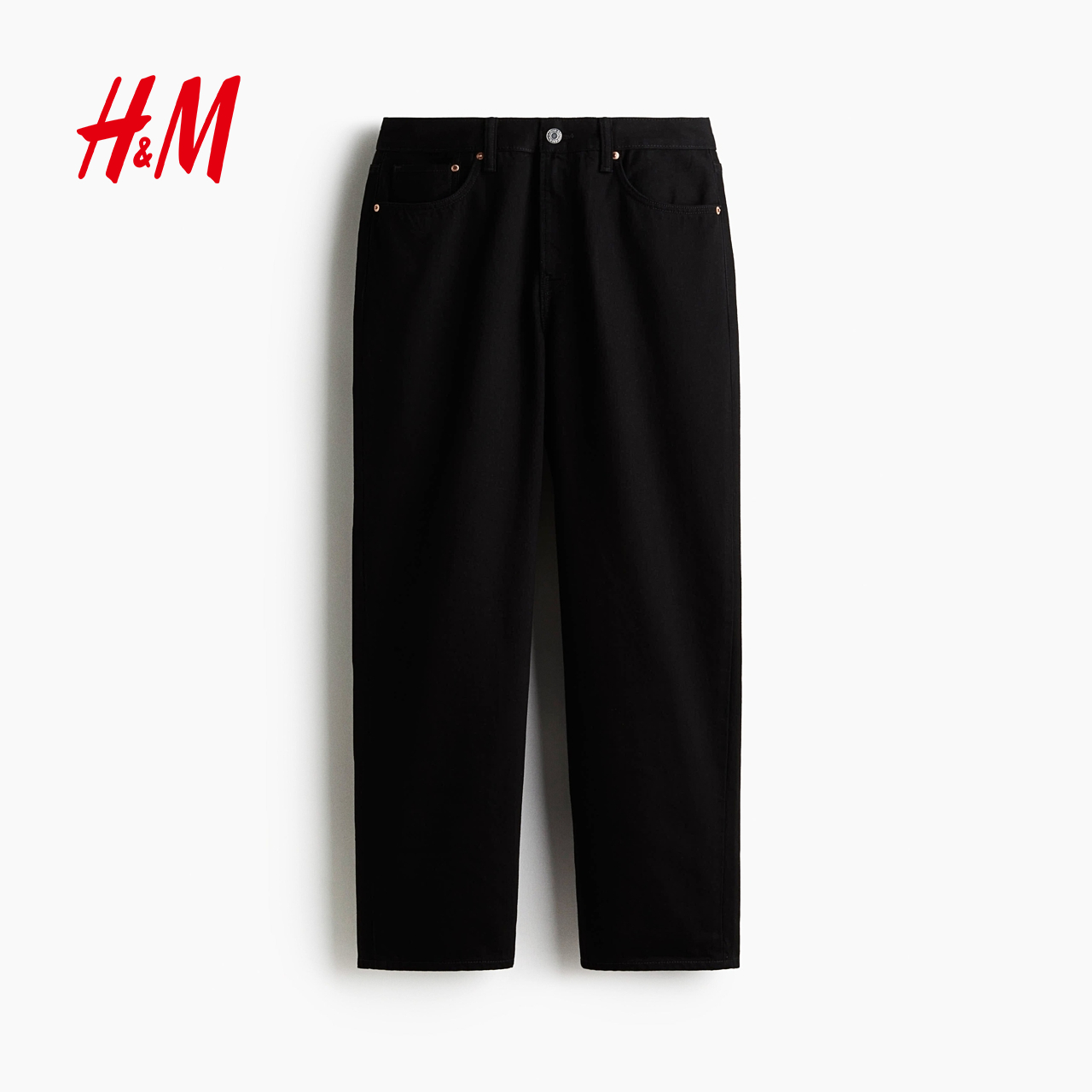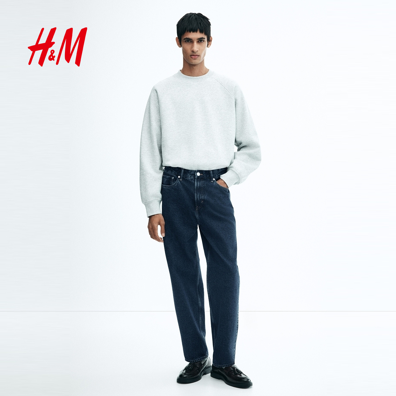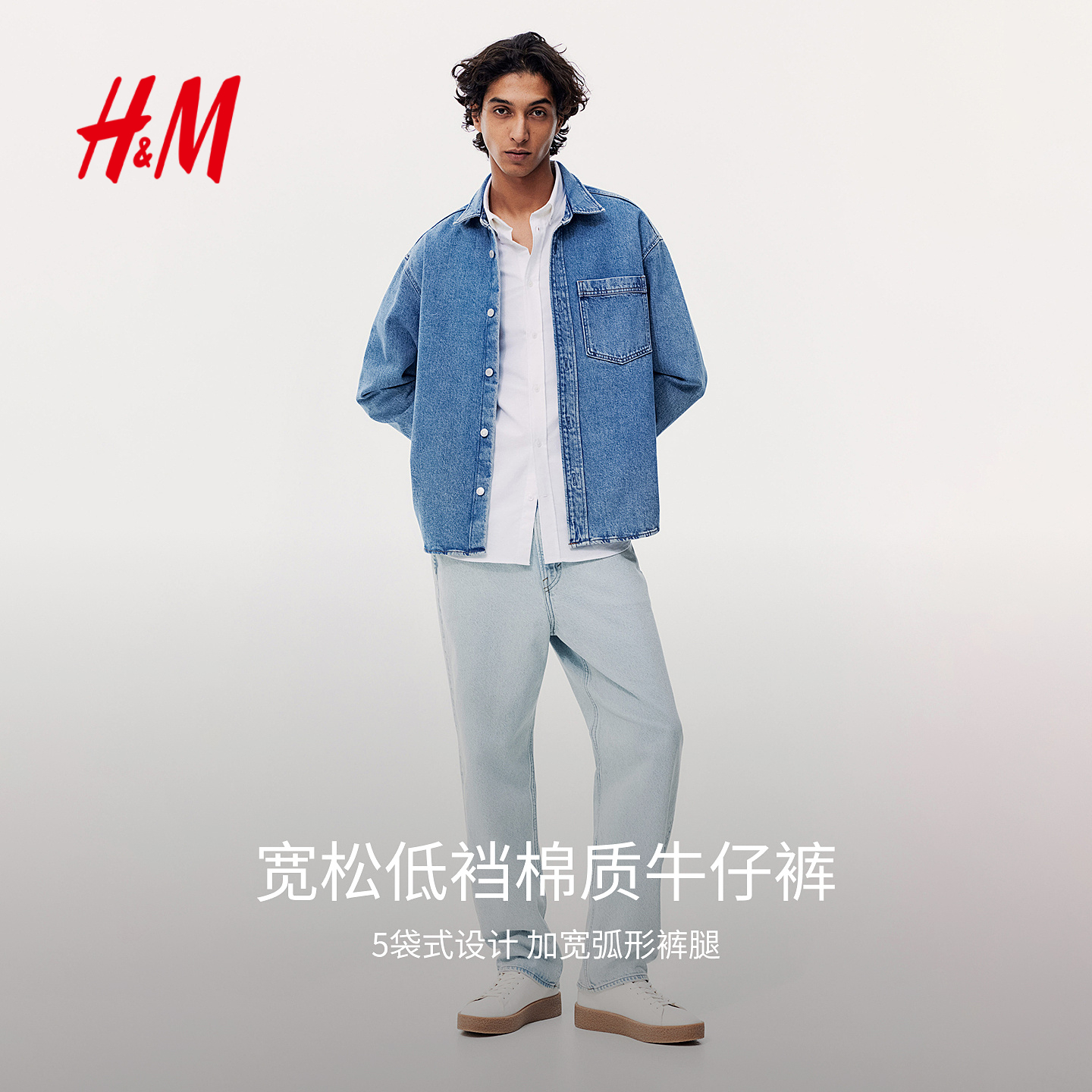 HM男装牛仔裤秋季宽松潮流棉质中腰直筒外出阔腿裤长裤1096385