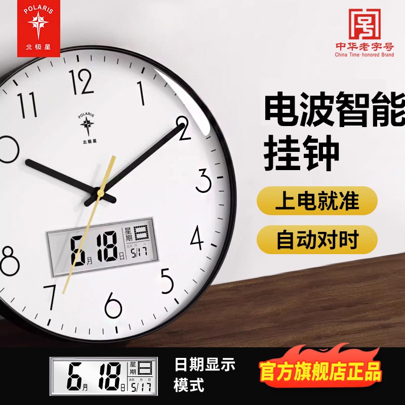 北极星电波钟表家用客厅大气创意时尚挂钟轻奢电子万年历静音时钟