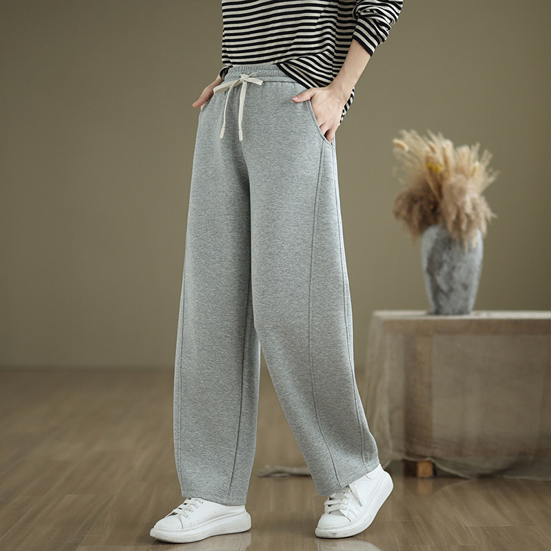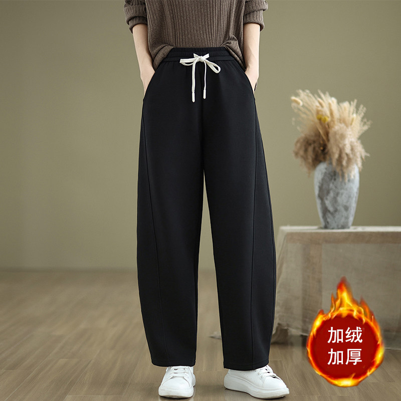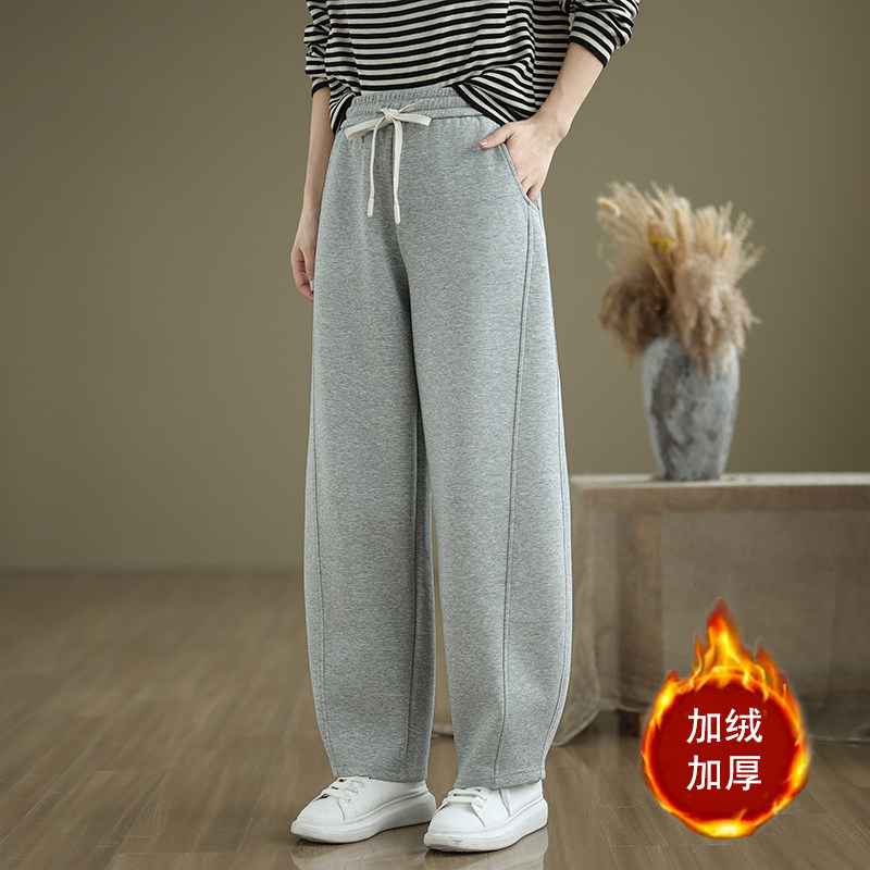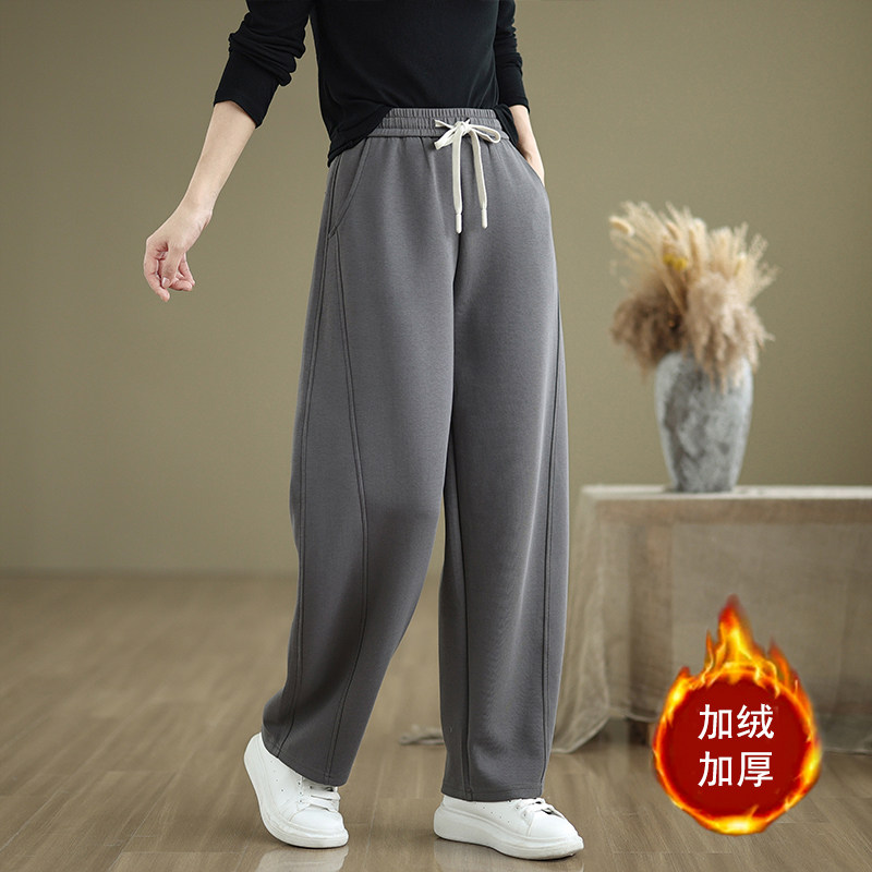 加绒灰色休闲弯刀裤女2025秋冬季大码胖mm显瘦小个子宽松阔腿卫裤
