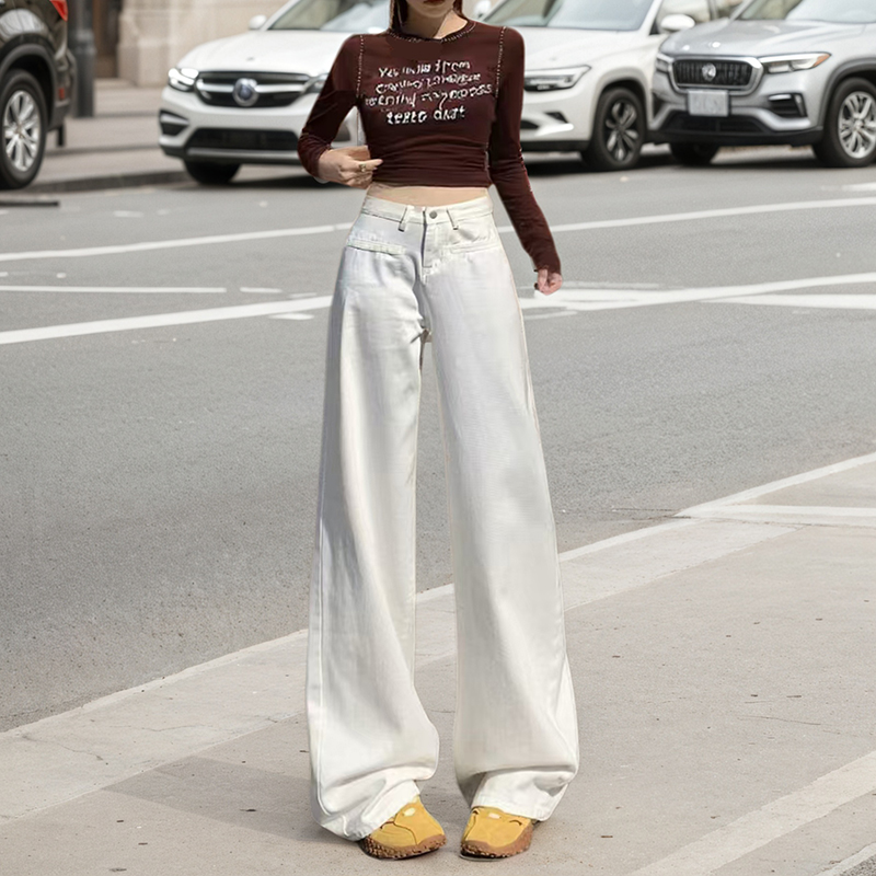 白色阔腿牛仔裤女2025秋季新款高腰宽松垂感休闲裤显瘦直筒拖地裤