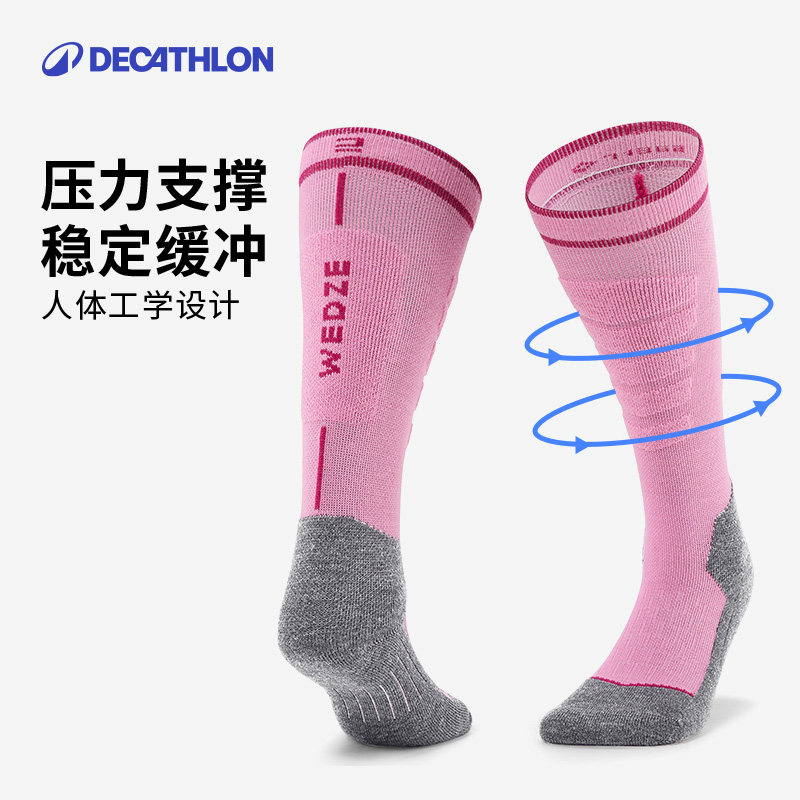 迪卡侬羊毛滑雪袜男女长筒儿童保暖加厚高筒户外专业单板袜子OVWS