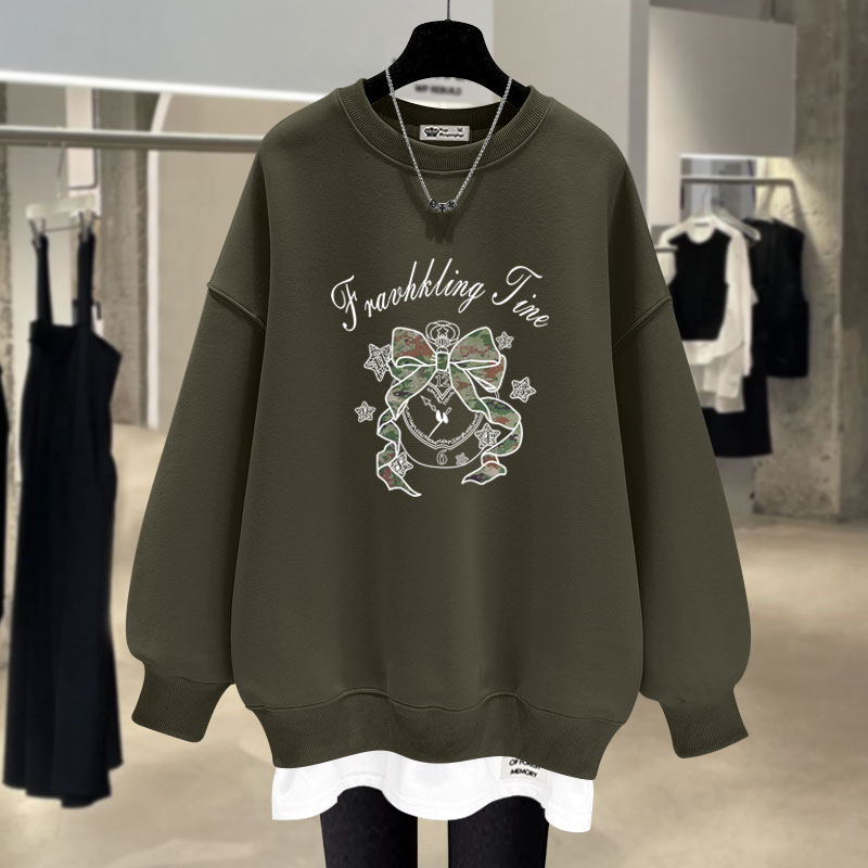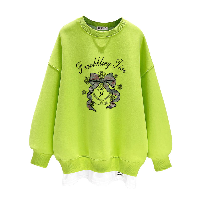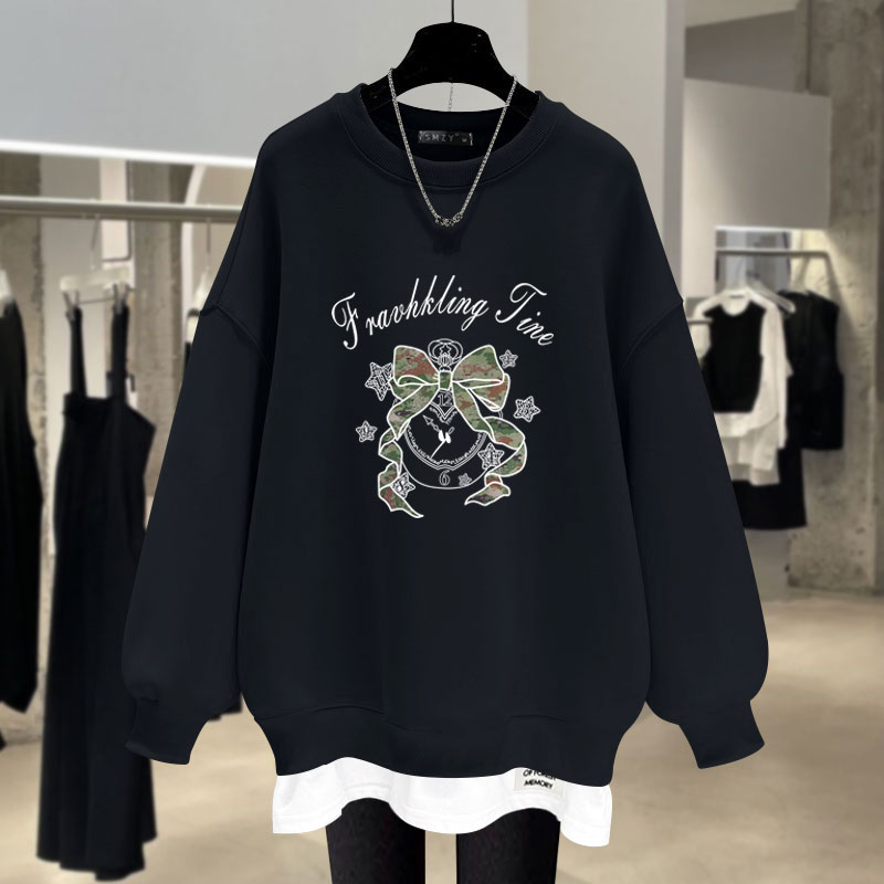 2025春秋冬季新款五星蝴蝶结中长款加绒加厚宽松套头圆领卫衣女潮
