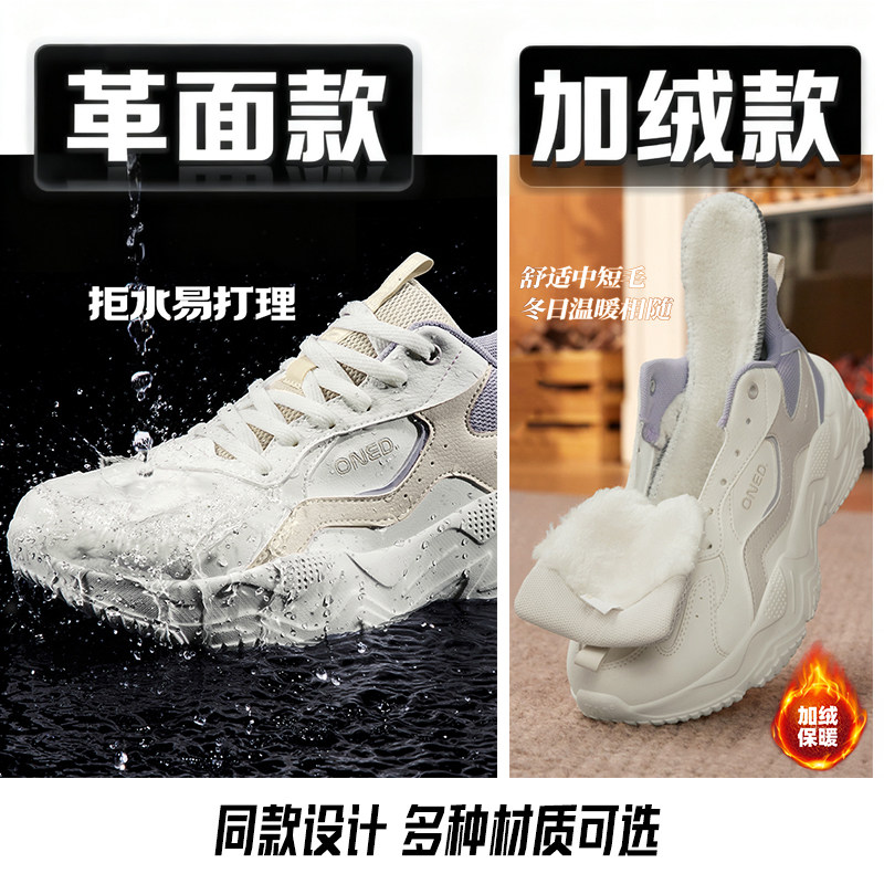 361女鞋冬季新款增高厚底老爹鞋加绒加厚保暖防水皮面休闲运动鞋