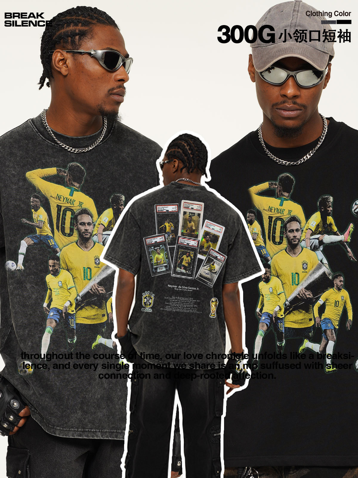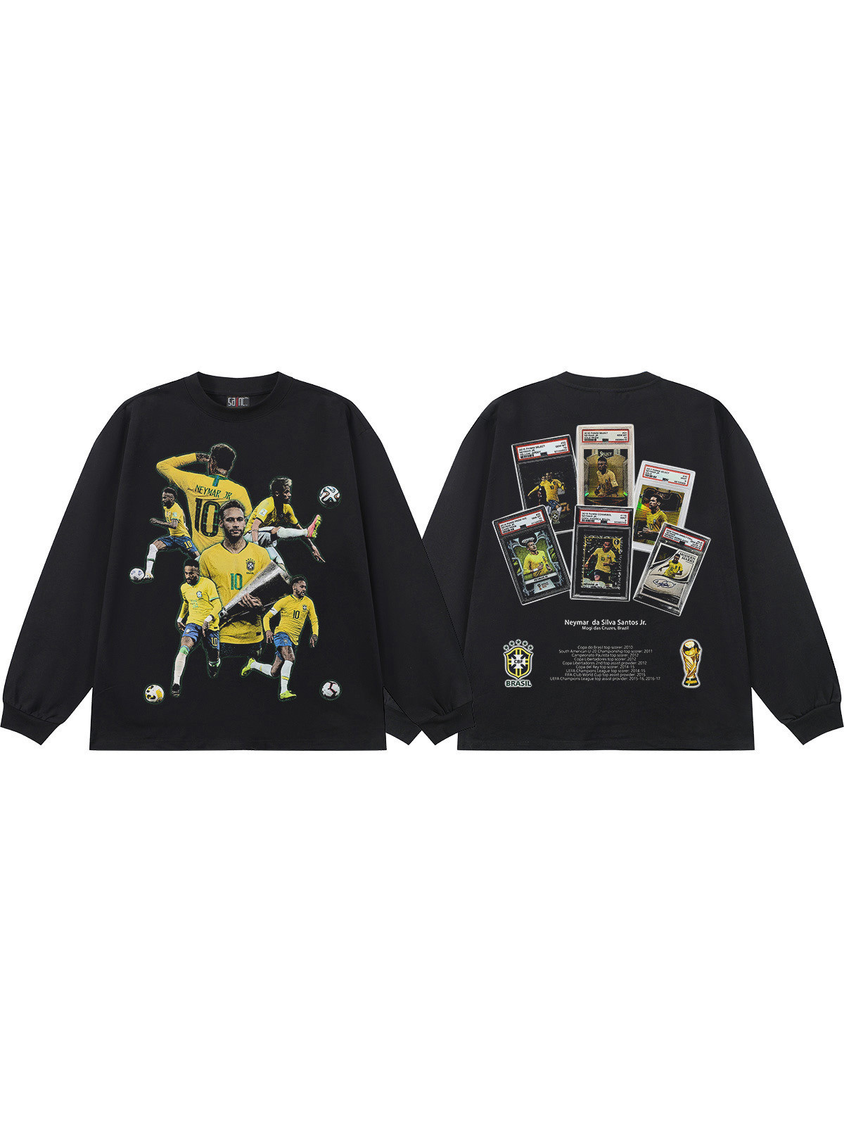 内马尔 neymar足球球星美式复古长袖t恤男女潮牌300g重磅宽松上衣
