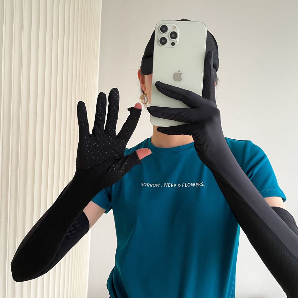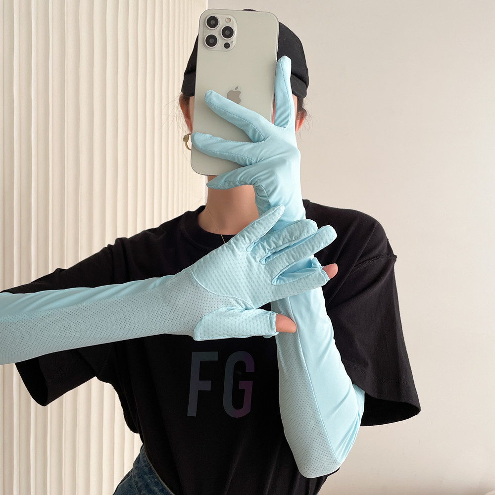 防晒袖套女夏季薄款冰丝长款漏指触屏手套户外骑行防紫外线护手臂