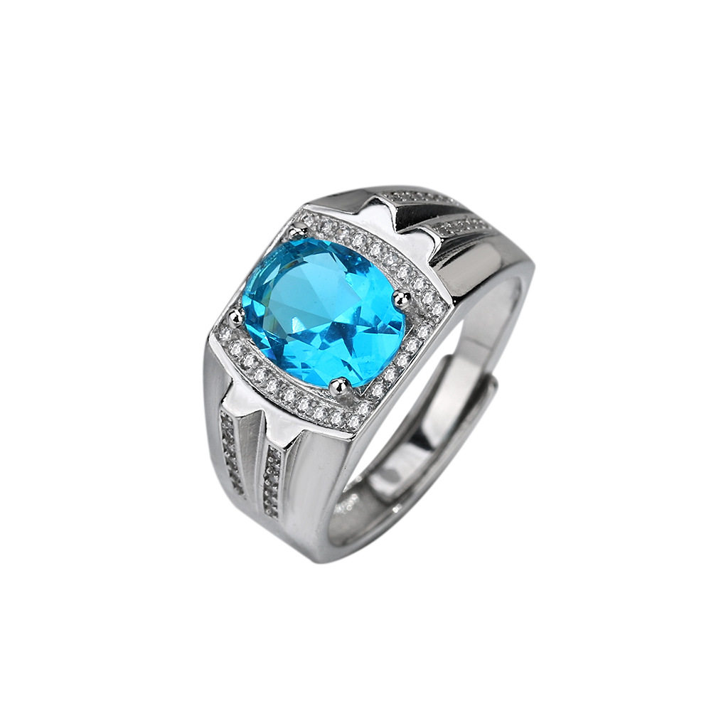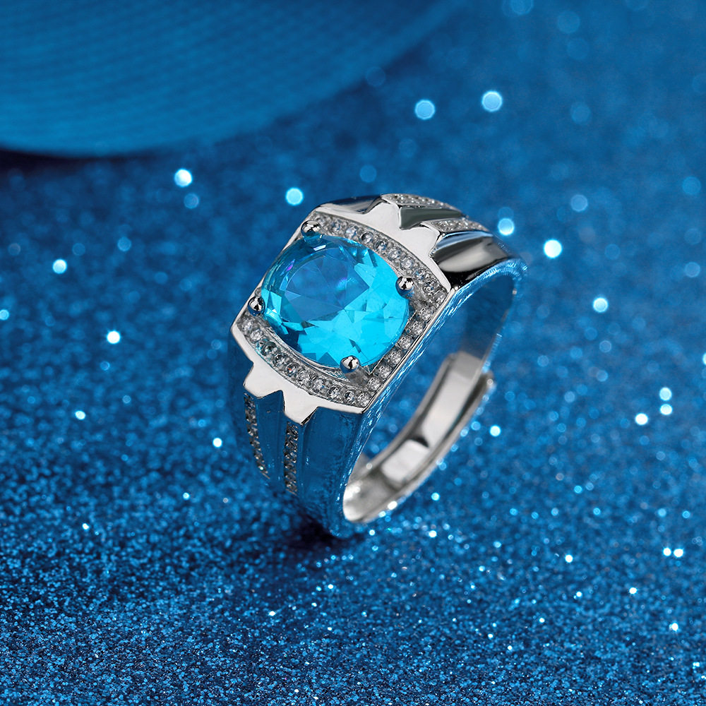 蓝宝石925纯银指环男霸气戒指不掉色不过敏礼品潮人个性单身钻戒