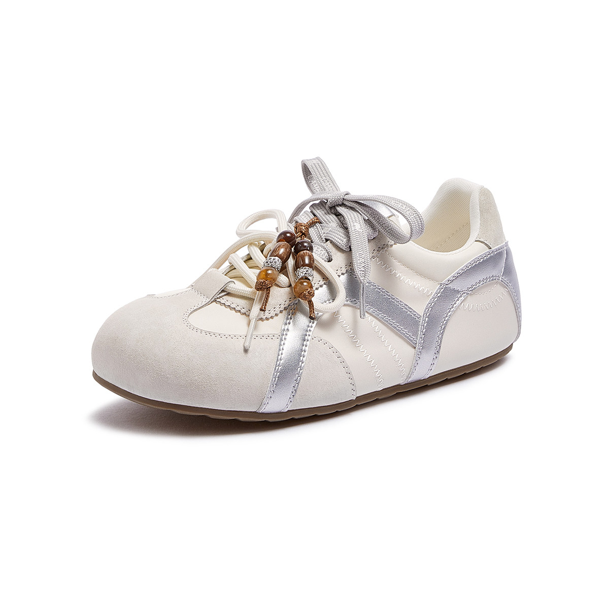 骆驼德训鞋女鞋2026春季新款休闲厚底板鞋运动鞋银色鞋子女阿甘鞋
