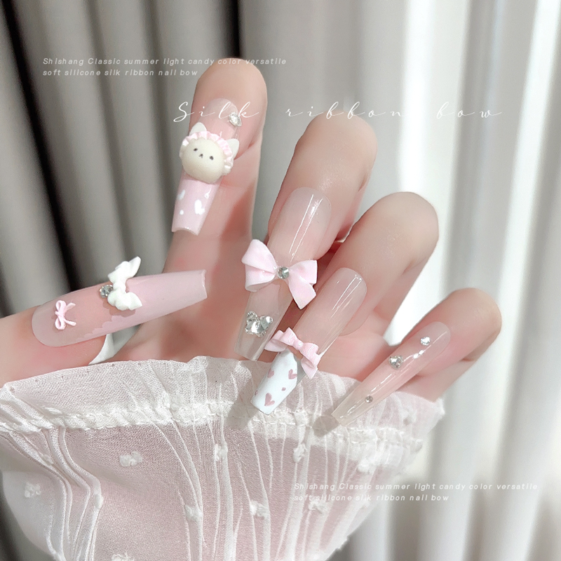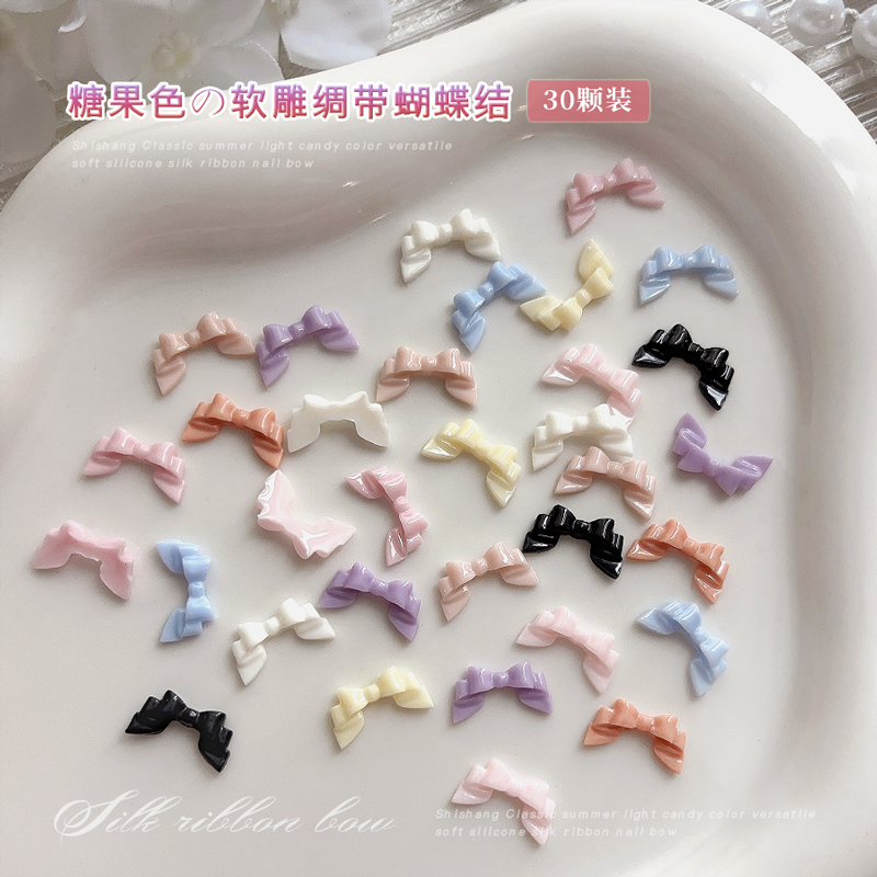 ins蝴蝶结美甲饰品立体软雕绸带一字领结diy穿戴甲树脂指甲钻配饰
