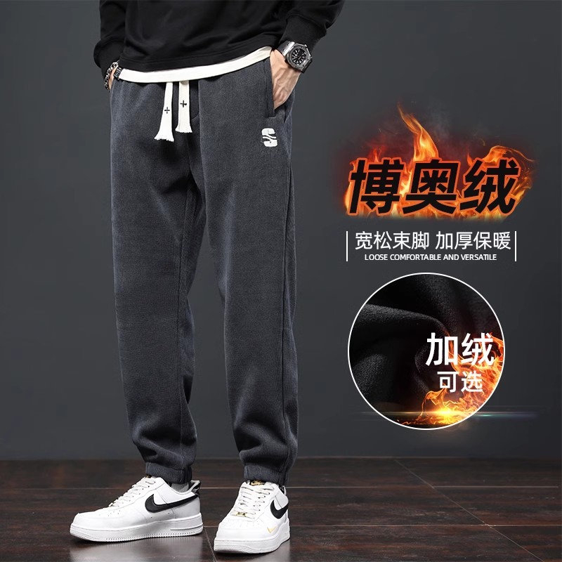 外贸男装干活穿的休闲裤男士灯芯绒秋冬季加绒运动束脚松紧腰卫裤