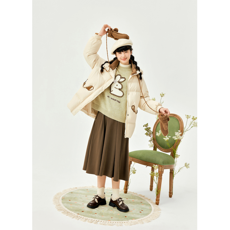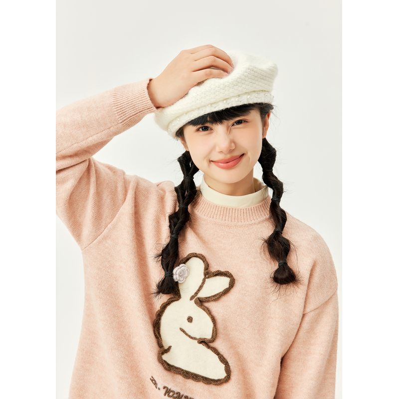 紫涵套头宽松织毛衣女冬季新款甜美可爱兔子花边内搭长袖圆领上衣