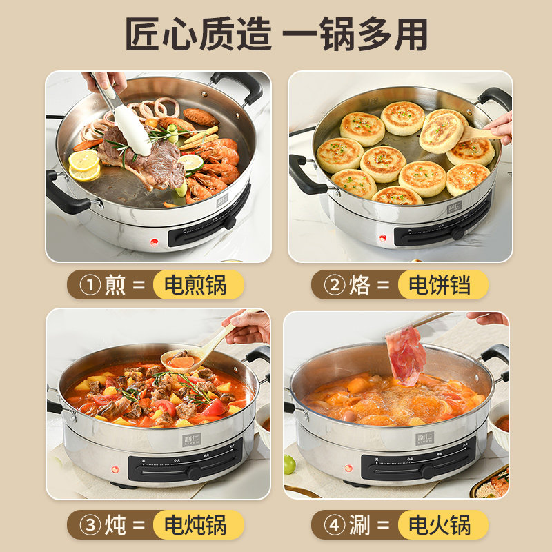利仁电煎锅不锈钢电饼铛家用新款加深加大多功能煎饼烙饼锅