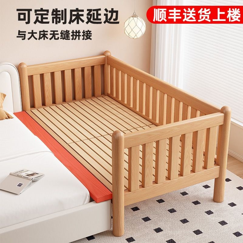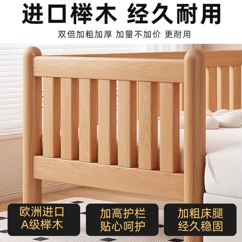 全榉木拼接儿童床实木护栏婴儿床大床小孩可订加宽床边榉木拼接床
