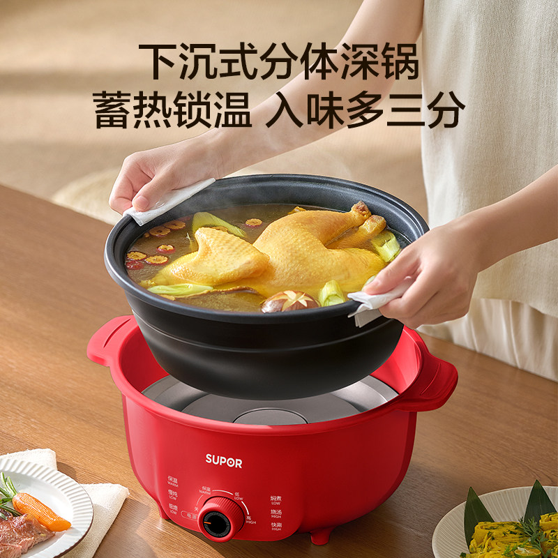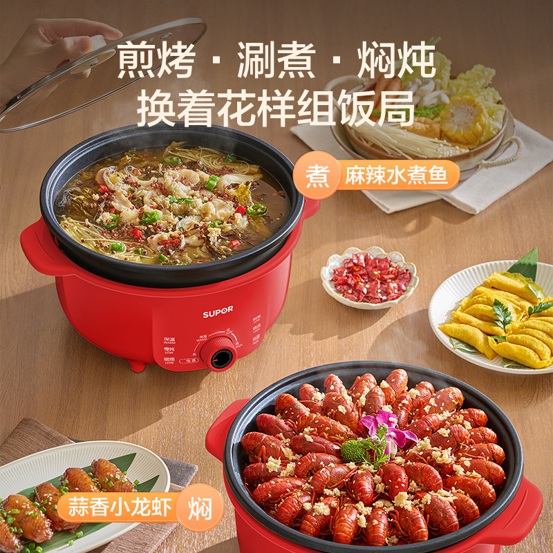 苏泊尔电火锅家用可分体拆洗大火力速沸5L大容量不粘多功能电煮锅
