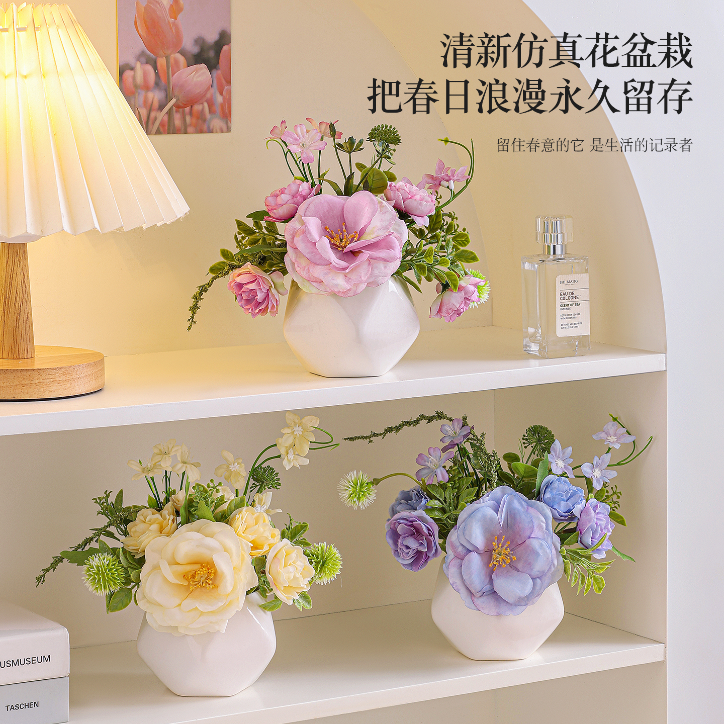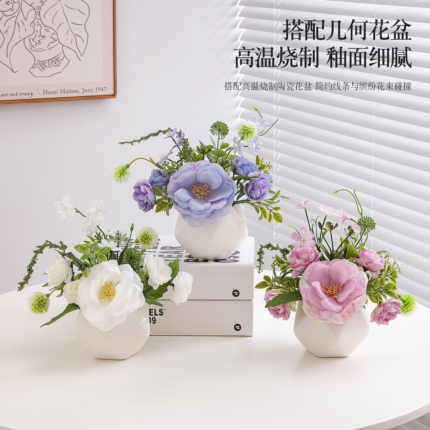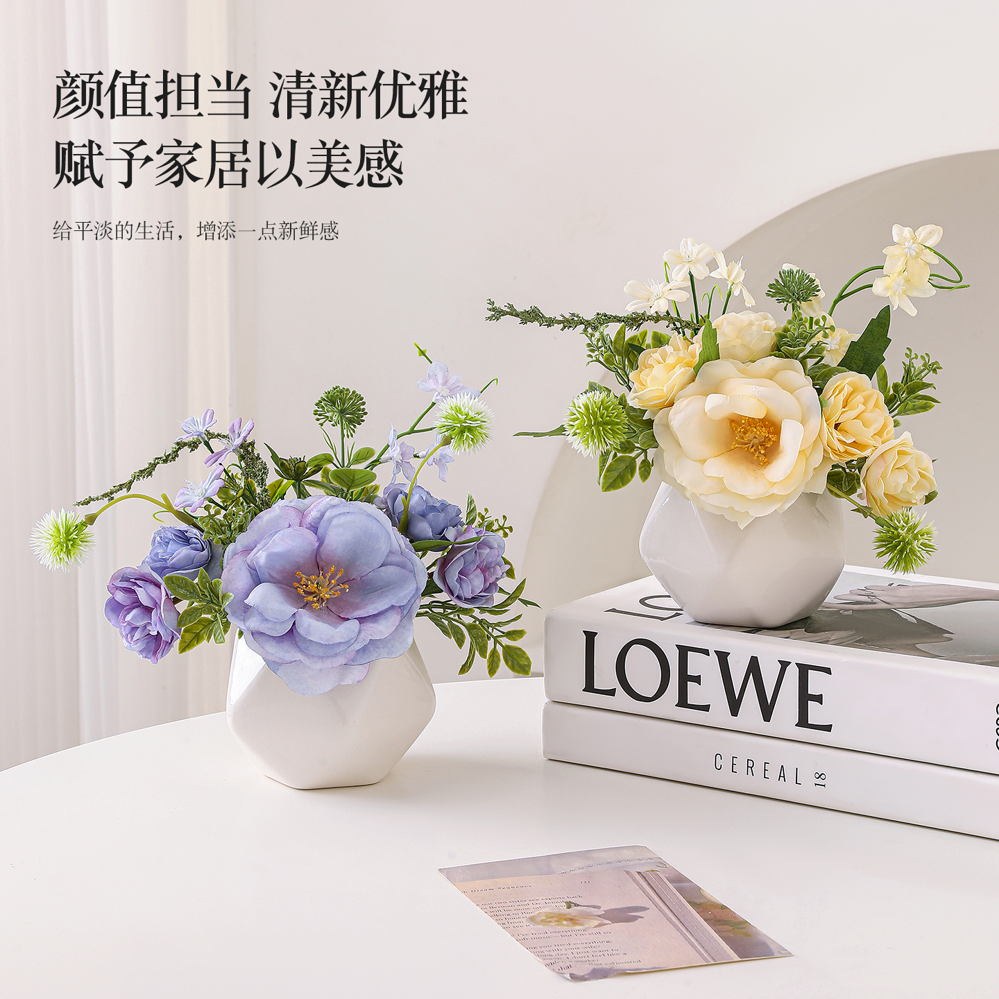 现代简约仿真花艺摆件客厅餐桌花瓶装饰品摆设几何陶瓷花盆高级感