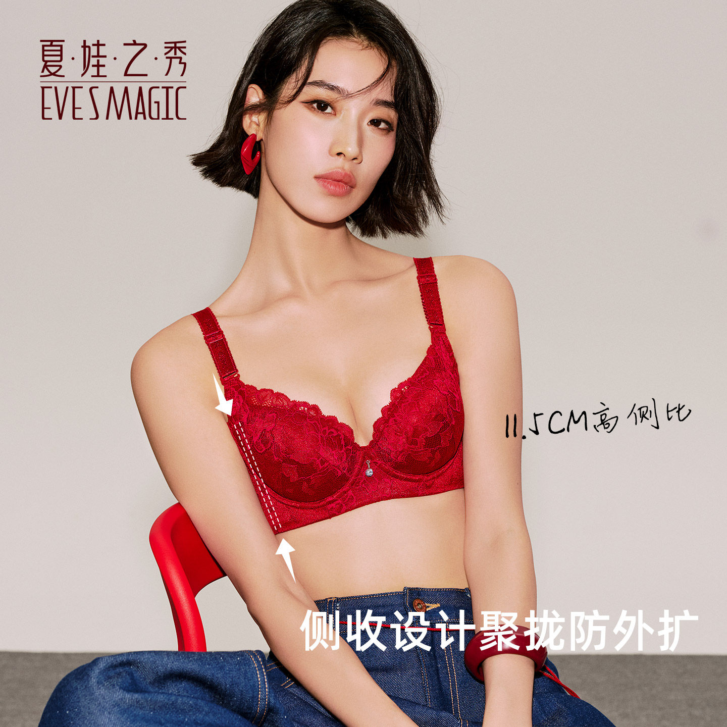 夏娃之秀红色调整型性感聚拢文胸