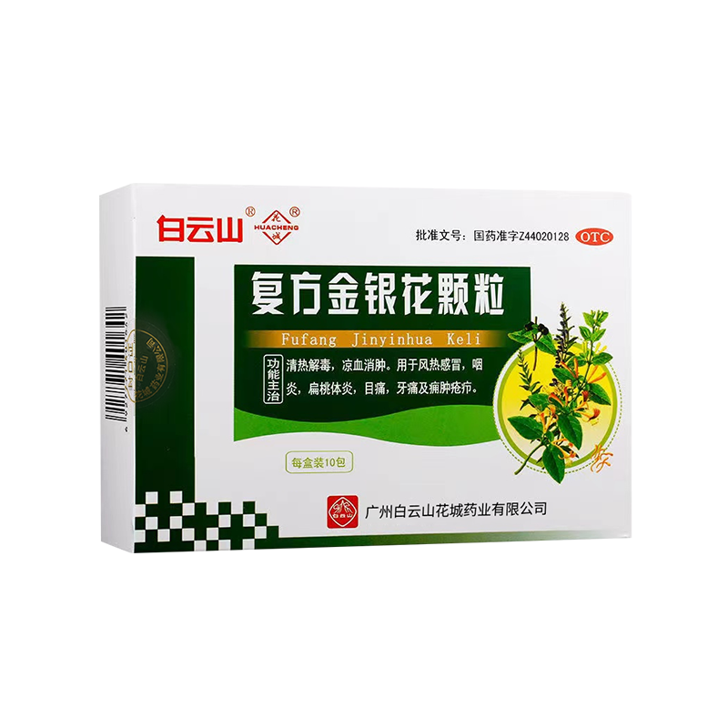 白云山花城 复方金银花颗粒10g*10袋 牙痛咽炎风热感冒药清热解毒
