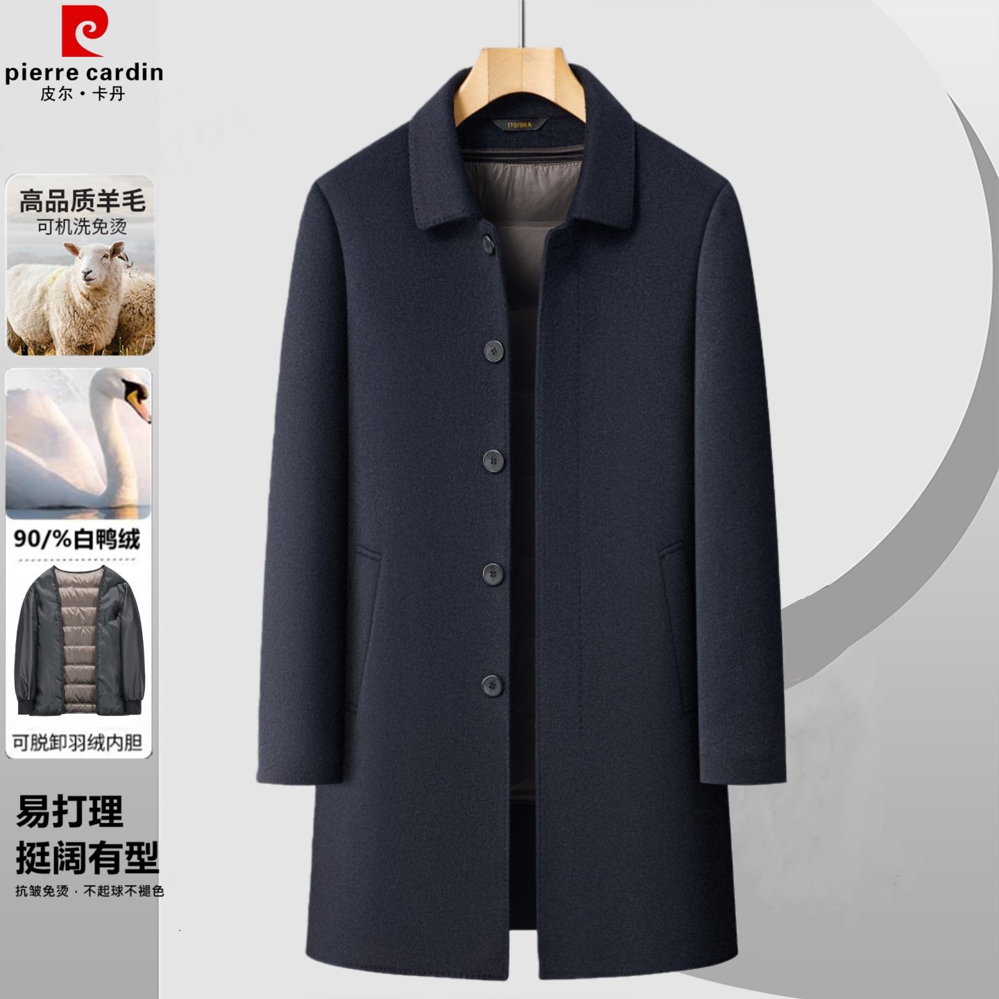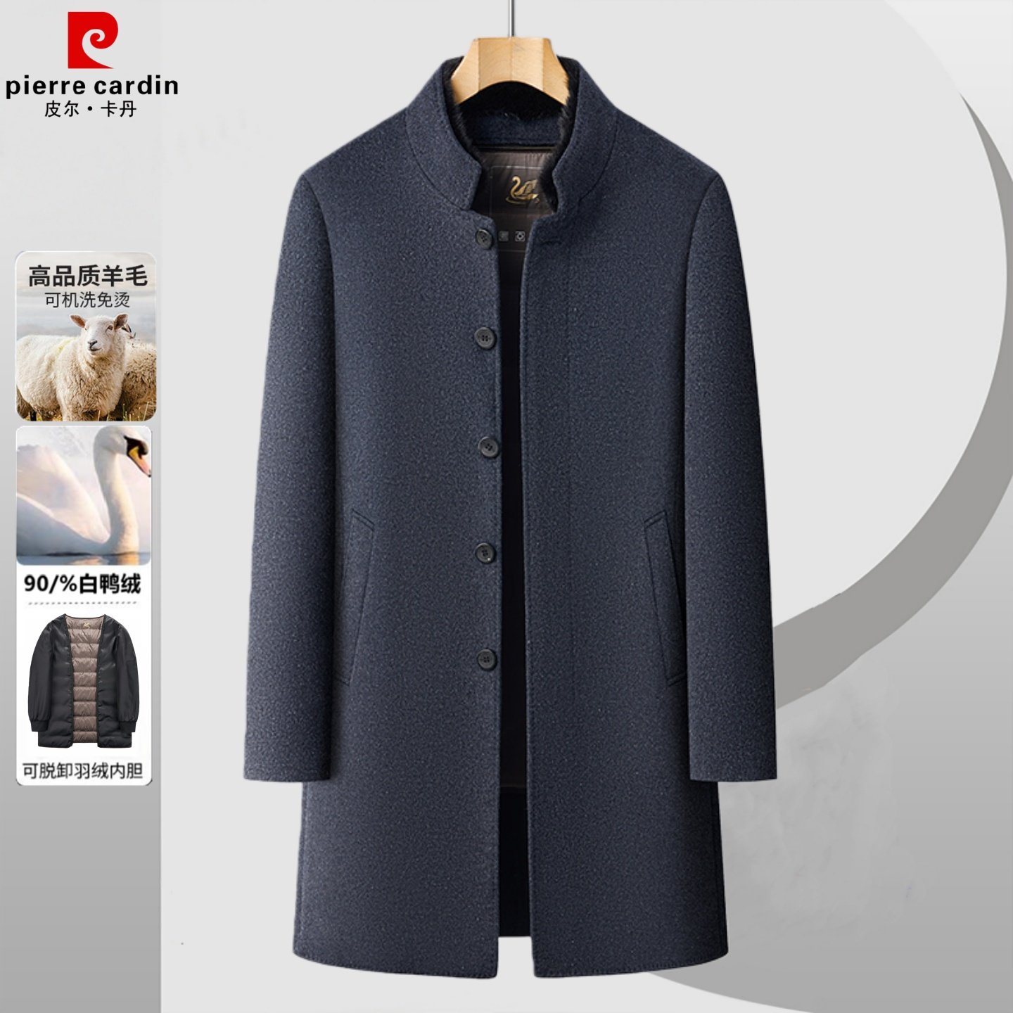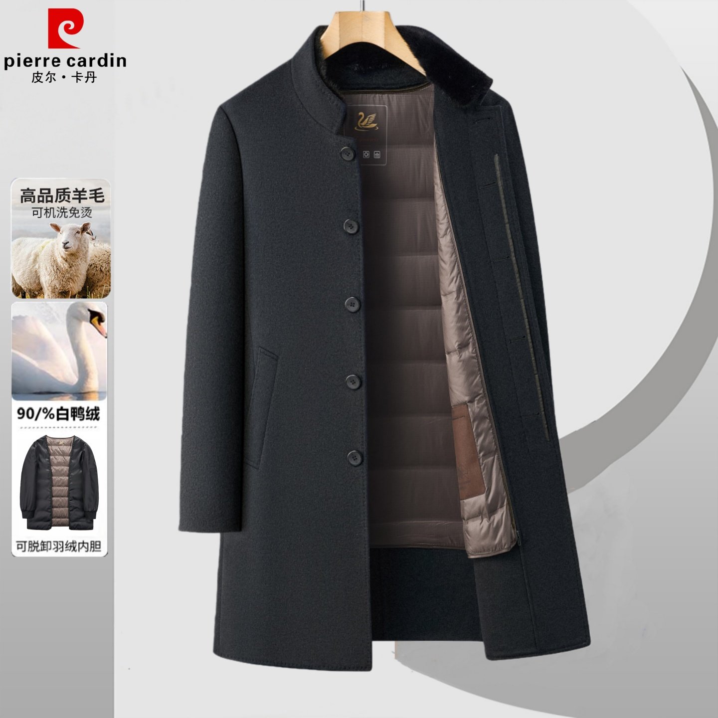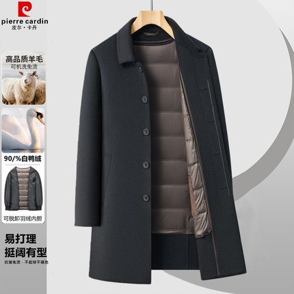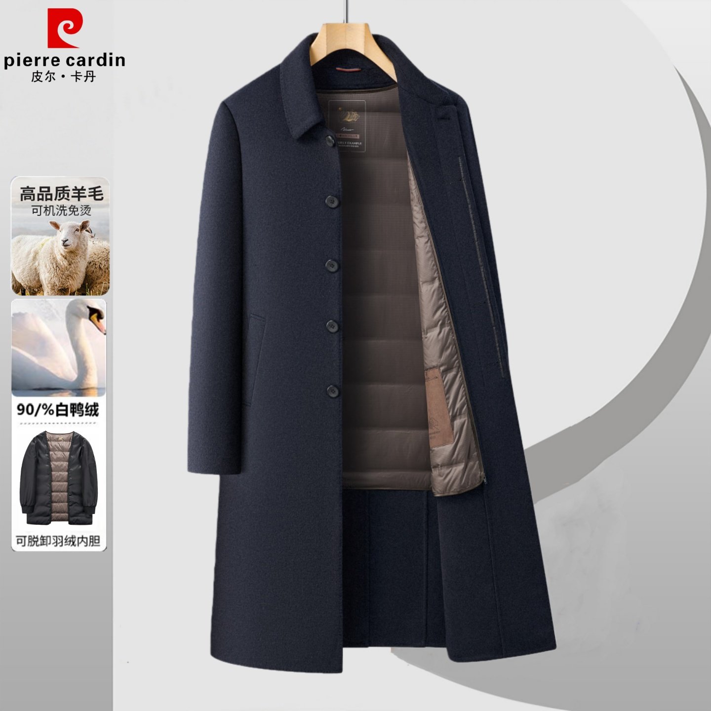皮尔卡丹中长款过膝羊毛呢大衣冬季加厚保暖羽绒服外套中年爸爸装