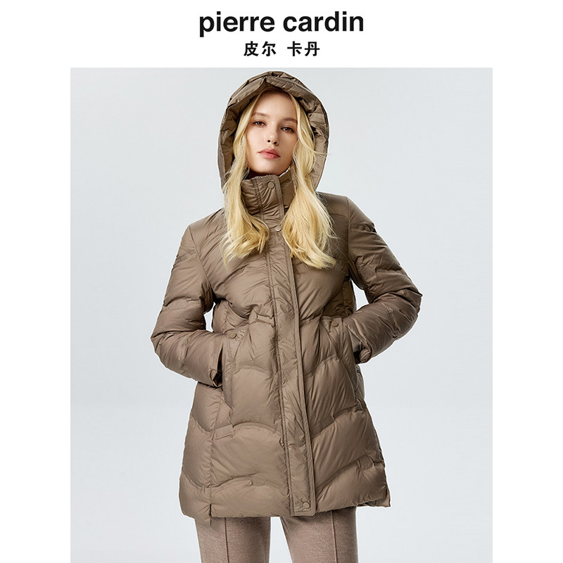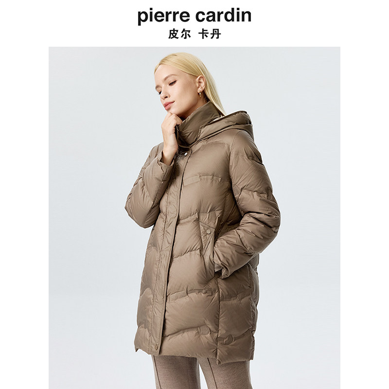 【皮尔卡丹女装】简约通勤休闲连帽保暖鹅绒羽绒服【专柜正品】