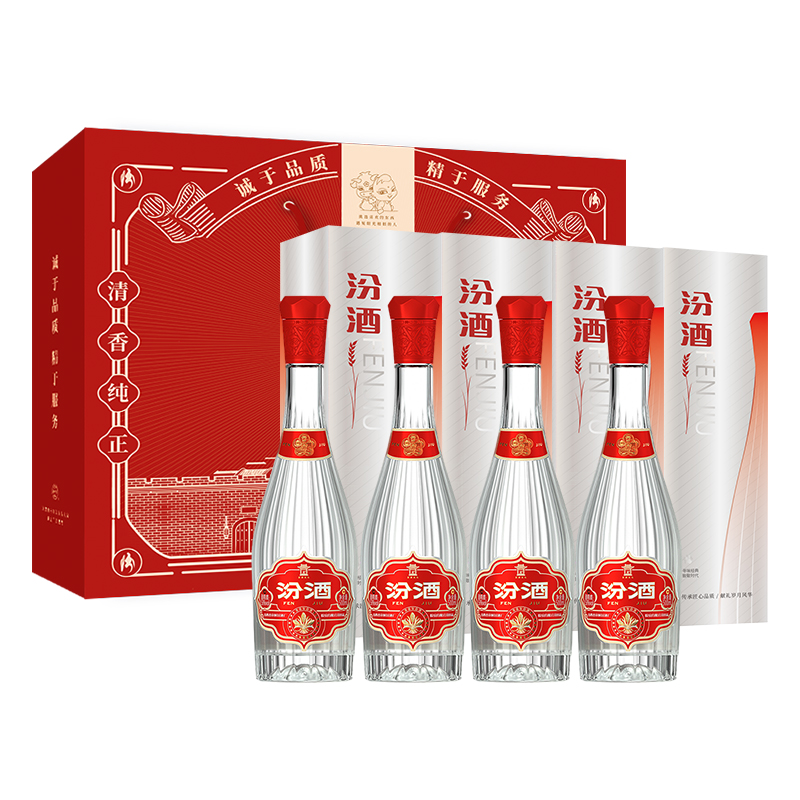 【官方正品】山西杏花村酒 献礼版玻汾酒53度500mL*4瓶纯粮食白酒