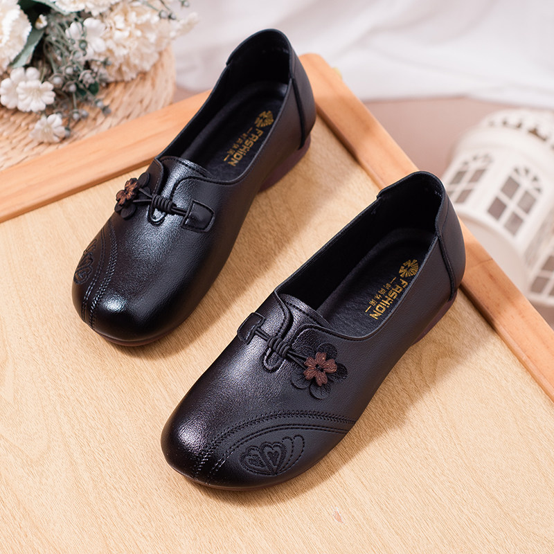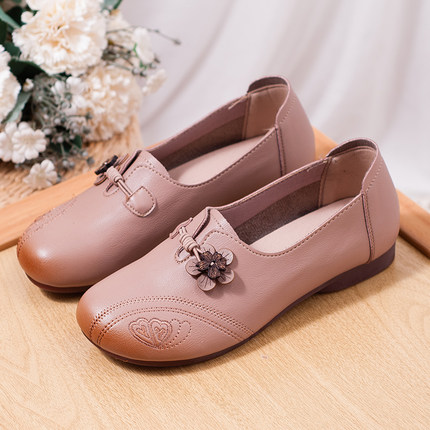 轻便防滑软底软皮舒适妈妈鞋