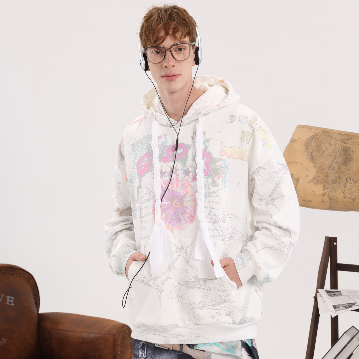 GENANX闪电潮牌2025冬季新款巨好看的慵懒穿搭情侣装加绒连帽卫衣