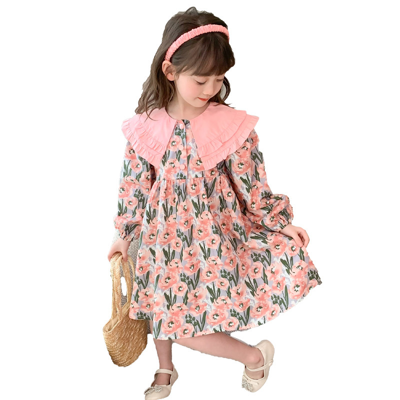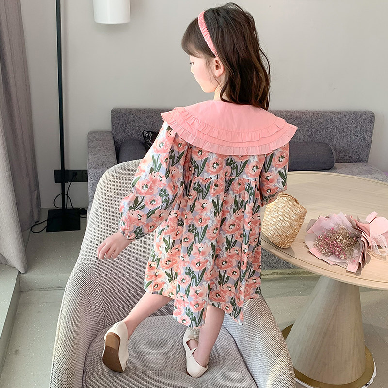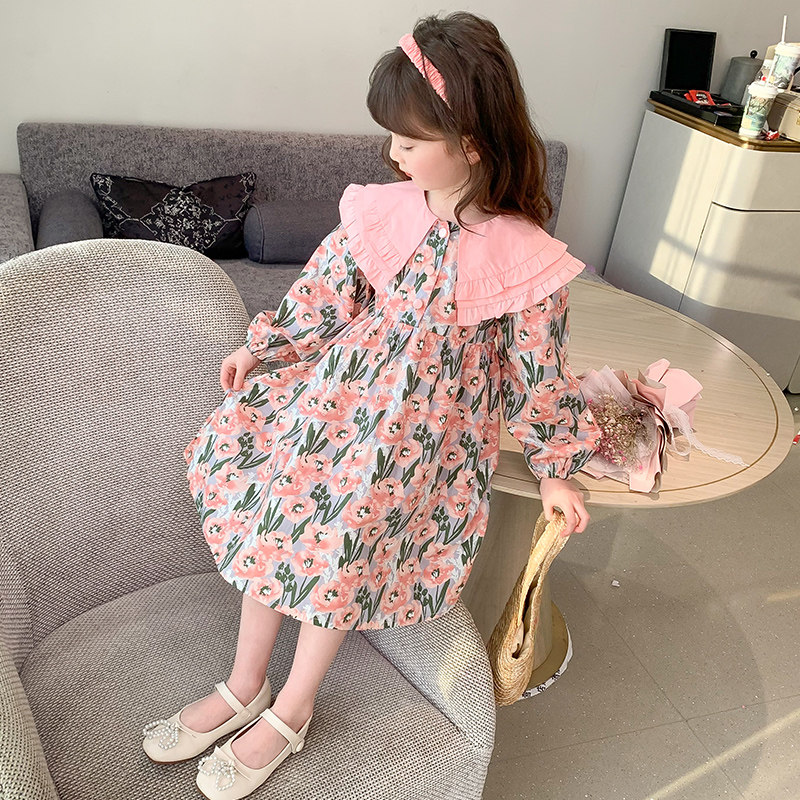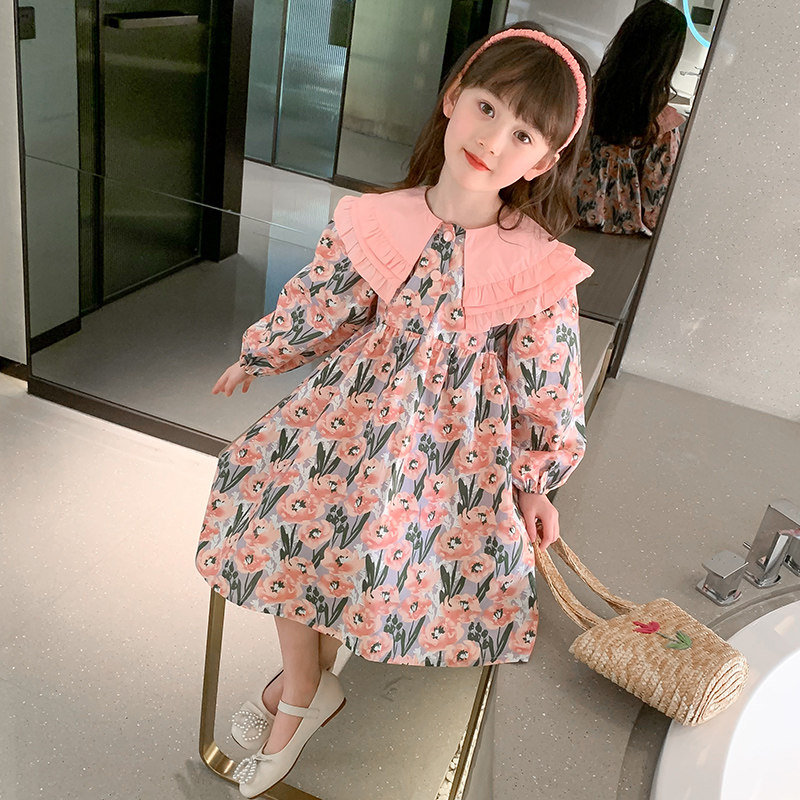 女童连衣裙春装2023新款洋气宝宝公主裙儿童P春秋款长袖碎花裙子