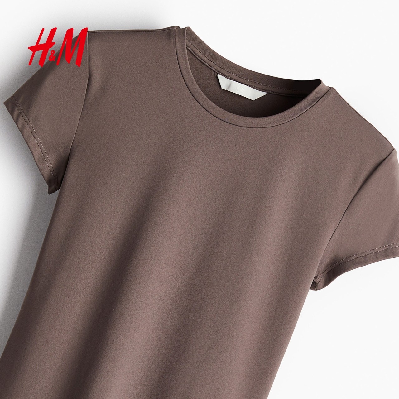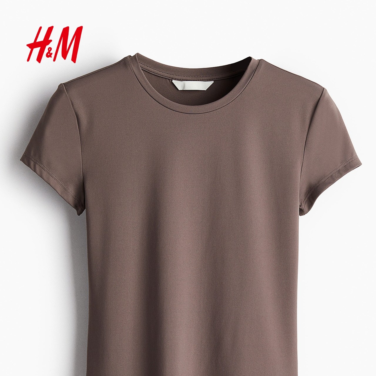 HM女装T恤春季时尚修身显瘦圆领窄边领口短袖上衣1142908