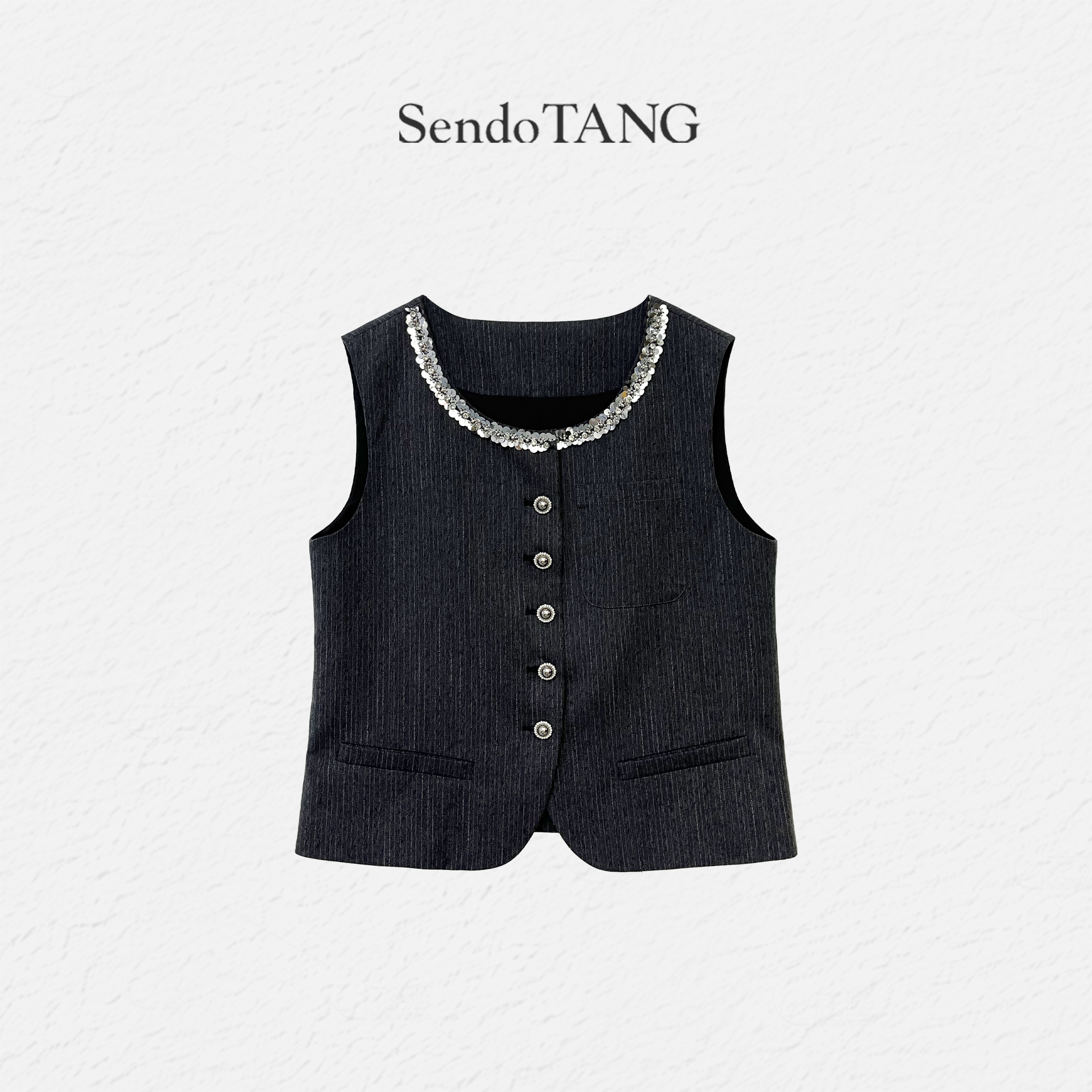 现货重工钉珠【月落银辉】胖多女装新款时尚高级感马甲休闲裤套装