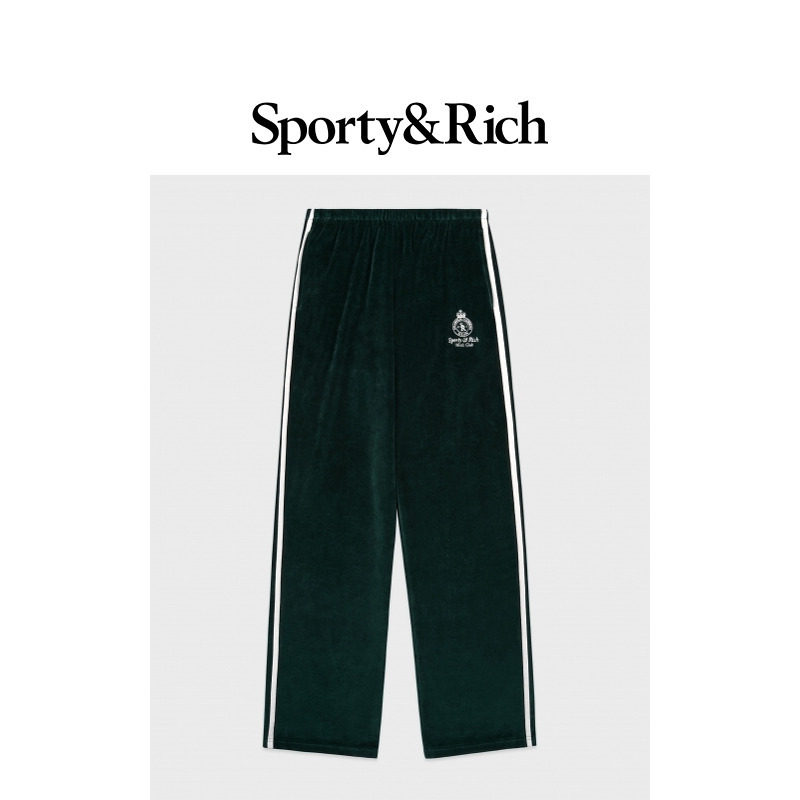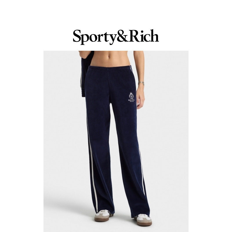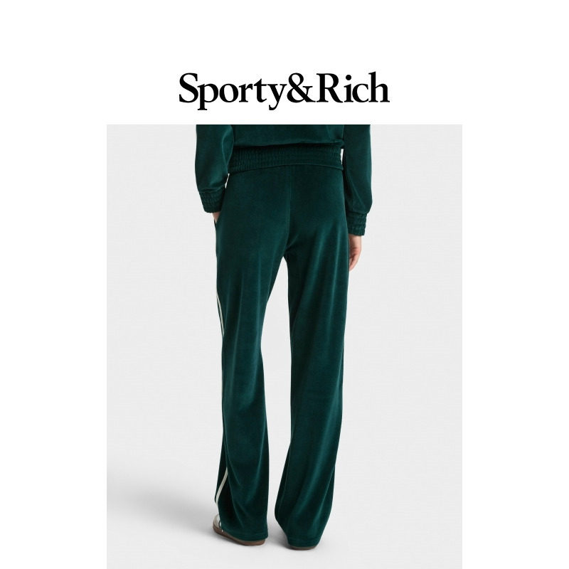 [秋冬新品]Sporty&Rich Tennis系列女士网球风撞色条纹丝绒感长裤