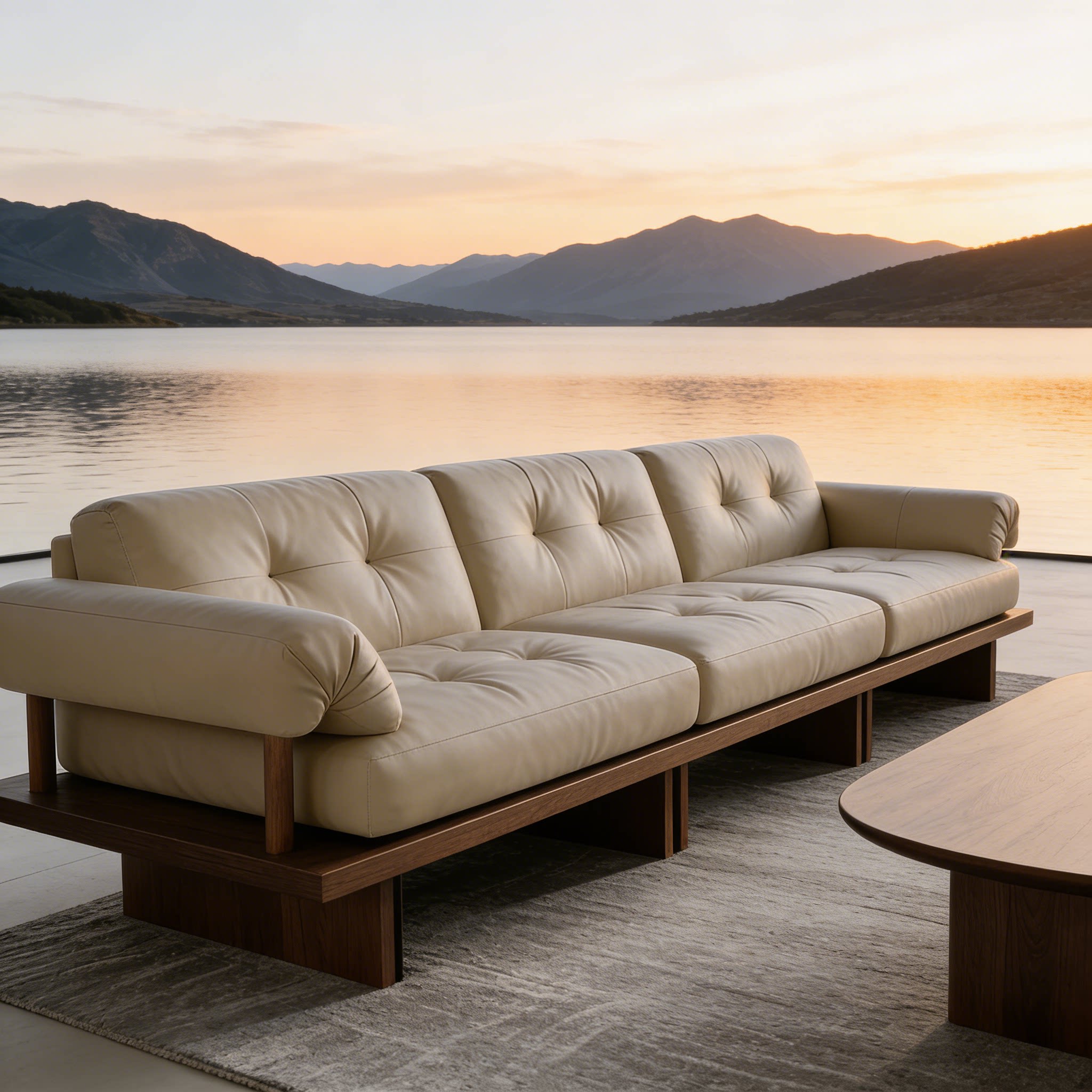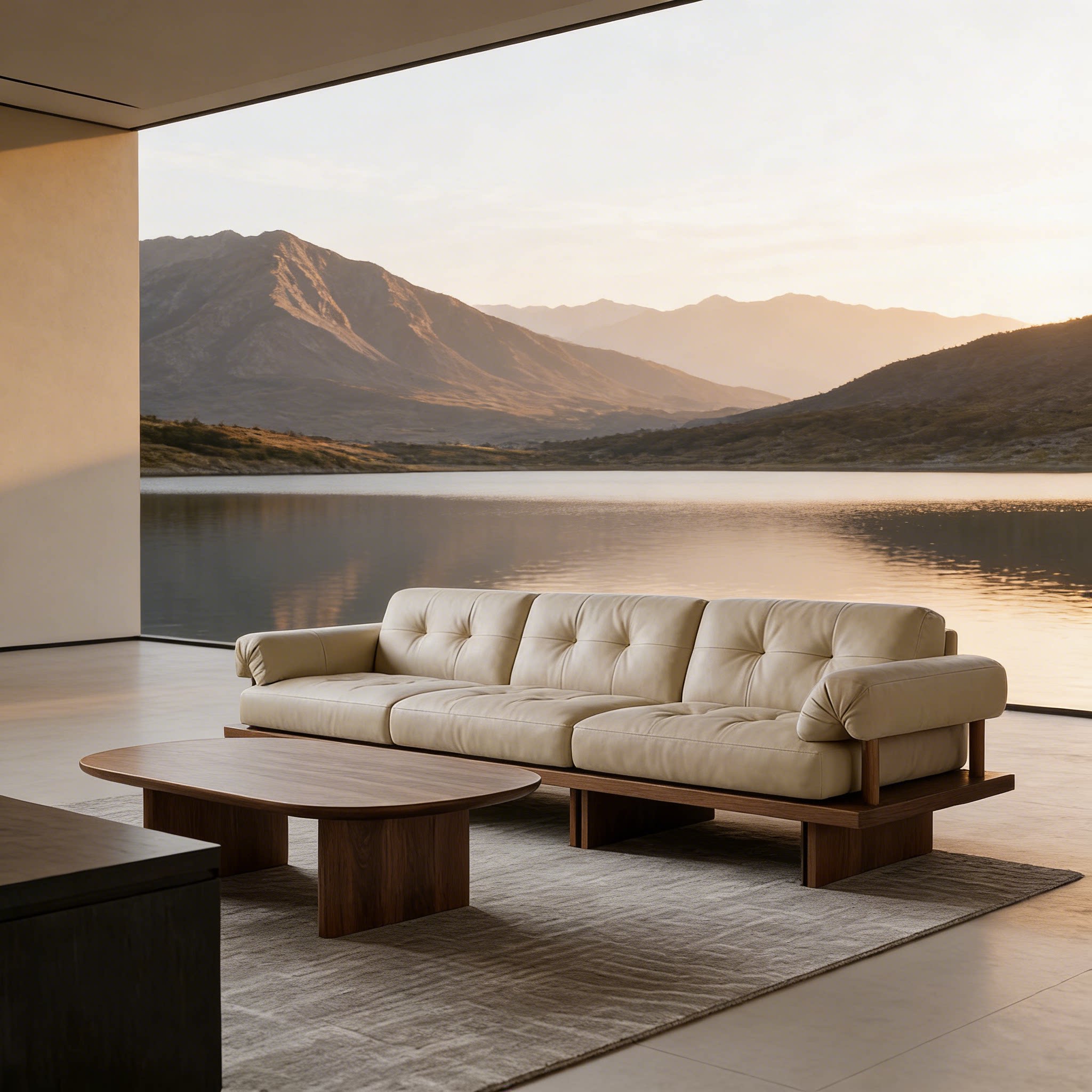 新中式现代简约实木沙发客厅小户型三人位米色皮质沙发茶几组合