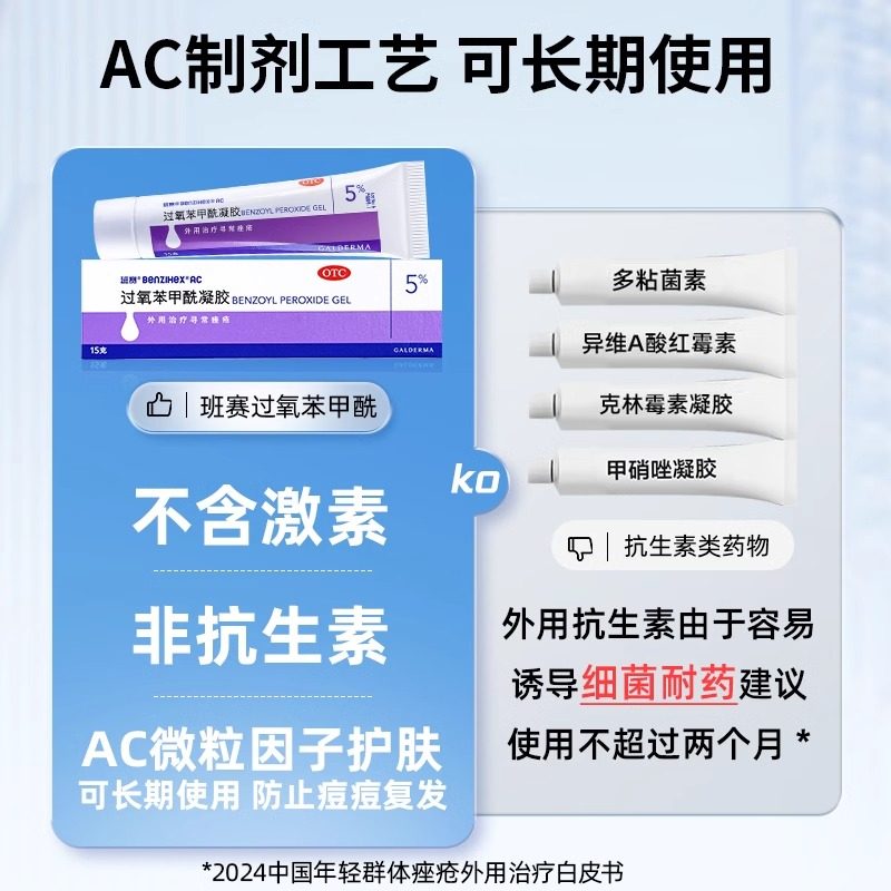 【自营】【明必欣】过氧苯甲酰凝胶5%*15g*1支/盒⭐非抗生素|不含激素