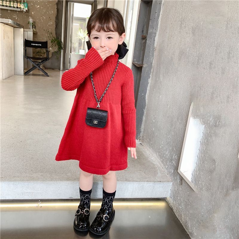 童装女童针织连衣裙2025秋冬新款韩版儿童长袖加厚百搭毛衣裙子